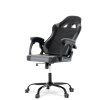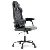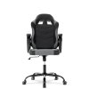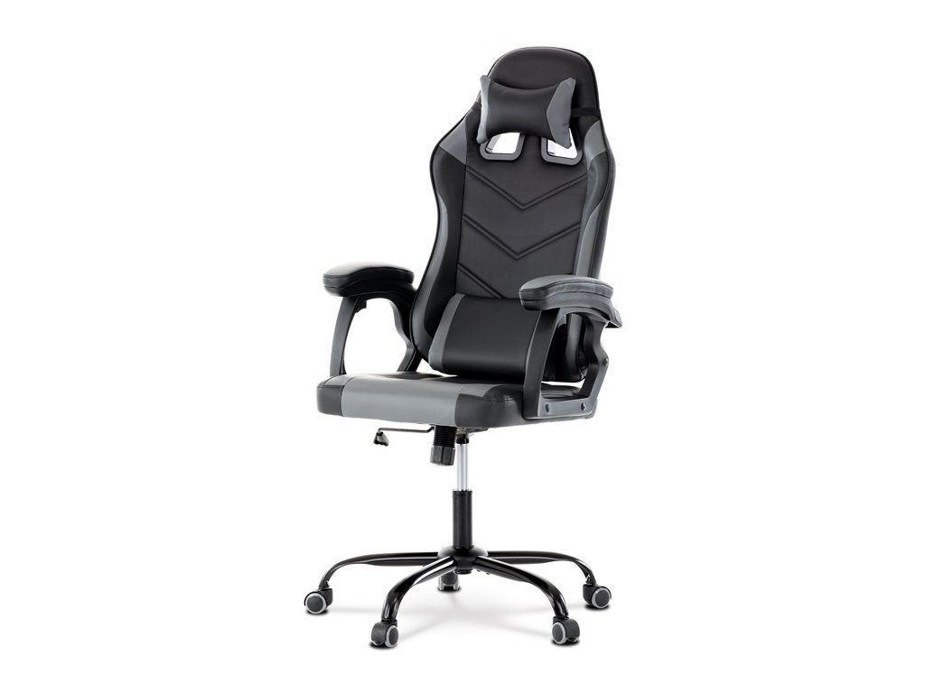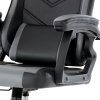 Herné kreslo v kombinácii sivej a čiernej ekokože ponúka ergonomicky tvarované operadlo s možnosťou hojdačkovej polohovateľnosti až do uhla 135°, čo umožňuje prispôsobiť polohu sedenia podľa potreby. Vrchná časť operadla je zmäkčená pre zvýšenie komfortu, doplnená o polstrovanú bedrovú opierku a opierku hlavy, ktoré podporujú správne držanie tela počas dlhých herných či pracovných sedení. Pevné, čalúnené podrúčky poskytujú stabilnú oporu rúk, zatiaľ čo kovový kríž zabezpečuje pevnosť a stabilitu celej stoličky. Výškovo nastaviteľný sedák umožňuje jednoduché prispôsobenie výšky sedenia individuálnym požiadavkám používateľa. Celková konštrukcia je navrhnutá pre dlhú životnosť a pohodlie pri intenzívnom používaní.