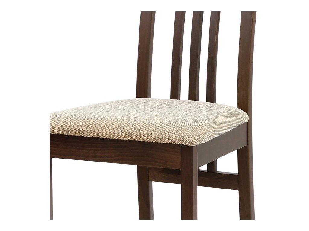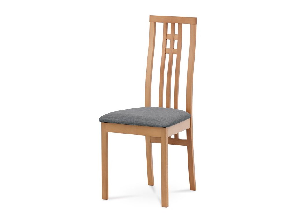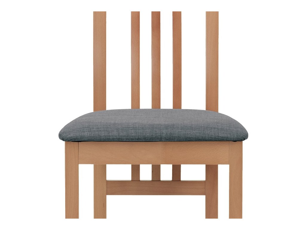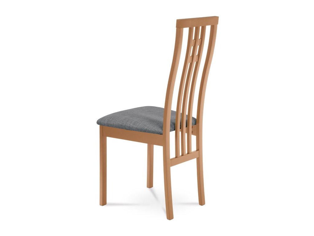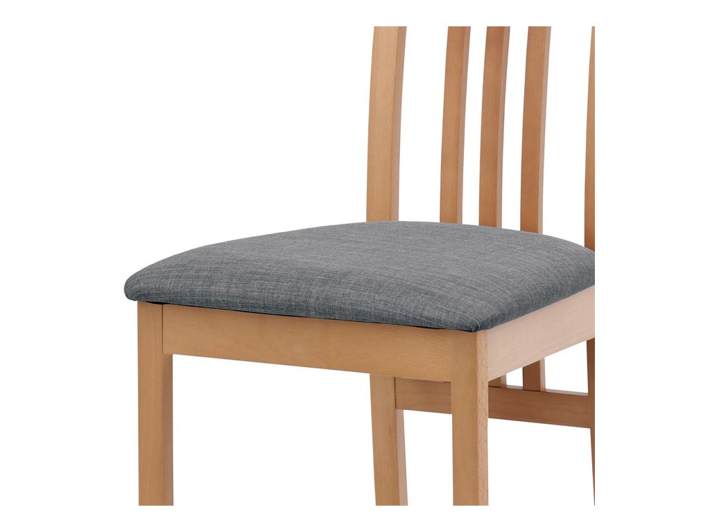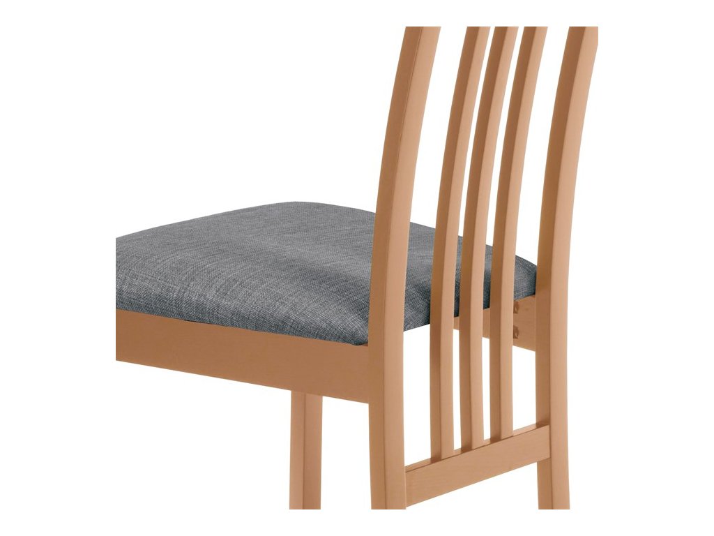 Jedálenská stolička BC-2482 BUK3 je vyrobená z masívneho buku s tmavým morením, ktoré zvýrazňuje prirodzenú kresbu dreva a dodáva jej teplý béžový odtieň. Pevná masívna konštrukcia zabezpečuje stabilitu a dlhú životnosť, zatiaľ čo ergonomicky tvarované operadlo s dekoratívnym prepletením ponúka pohodlnú oporu chrbta. Sedák je čalúnený sivou látkou, ktorá je príjemná na dotyk a ľahko sa udržiava. Stolička nemá podrúčky ani otočný mechanizmus, čo ju robí vhodnou pre klasické jedálenské priestory. Vďaka nadčasovému dizajnu a kvalitnému spracovaniu je ideálnou voľbou pre každodenné používanie.