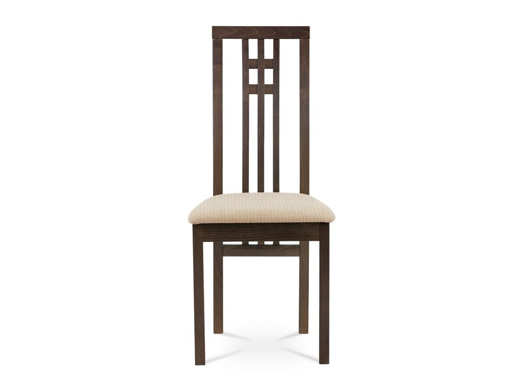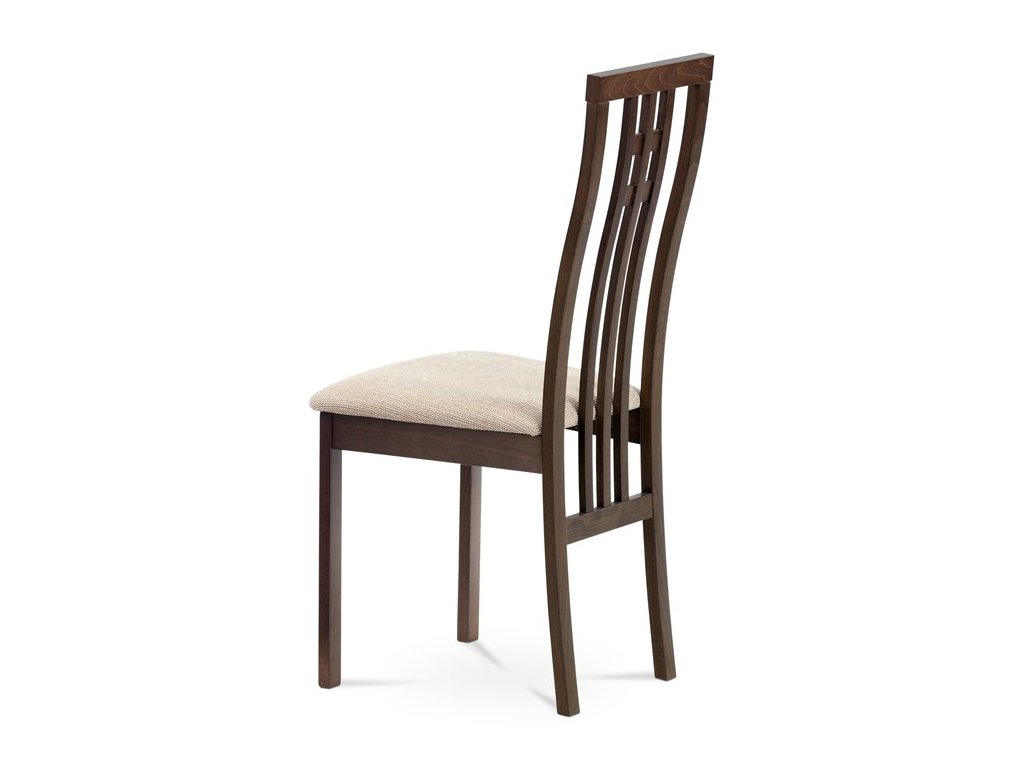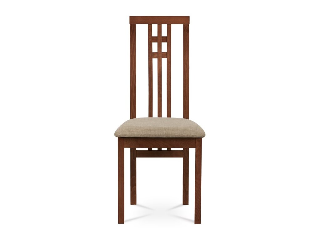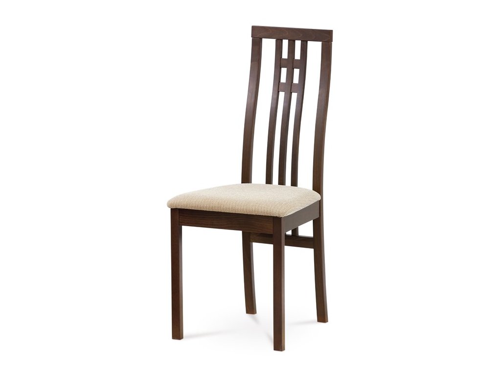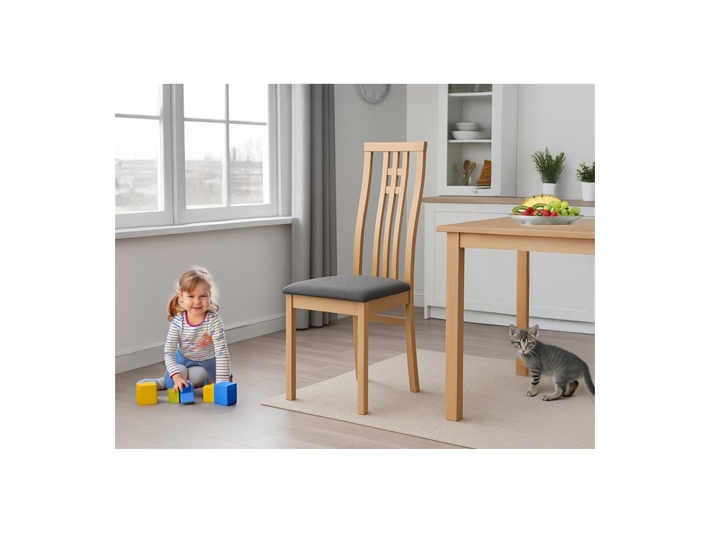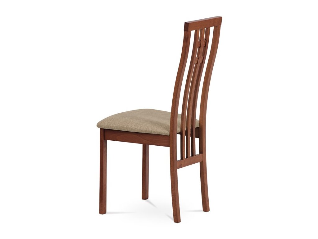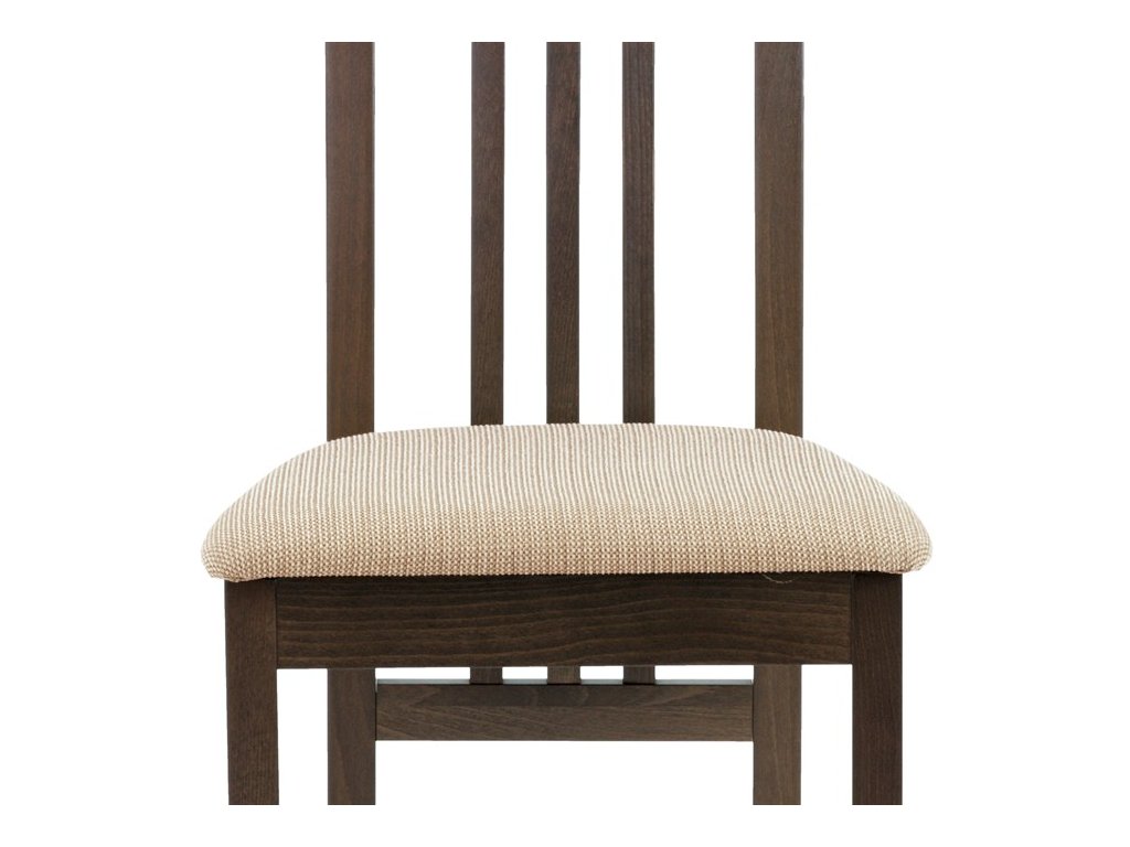 Jedálenská stolička BC-2482 BUK3 je vyrobená z masívneho buku s tmavým morením, ktoré zvýrazňuje prirodzenú kresbu dreva a dodáva jej teplý béžový odtieň. Pevná masívna konštrukcia zabezpečuje stabilitu a dlhú životnosť, zatiaľ čo ergonomicky tvarované operadlo s dekoratívnym prepletením ponúka pohodlnú oporu chrbta. Sedák je čalúnený sivou látkou, ktorá je príjemná na dotyk a ľahko sa udržiava. Stolička nemá podrúčky ani otočný mechanizmus, čo ju robí vhodnou pre klasické jedálenské priestory. Vďaka nadčasovému dizajnu a kvalitnému spracovaniu je ideálnou voľbou pre každodenné používanie.