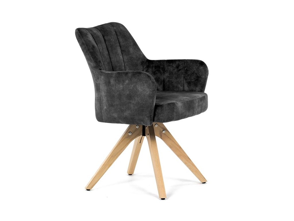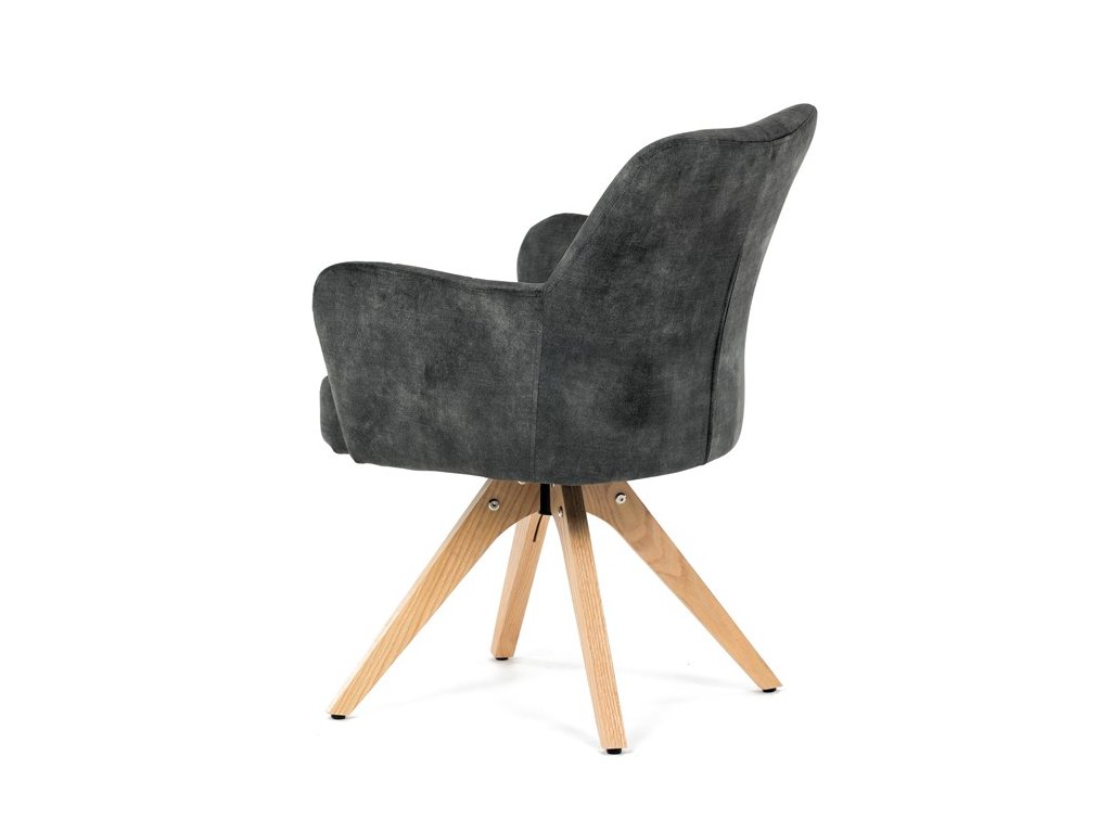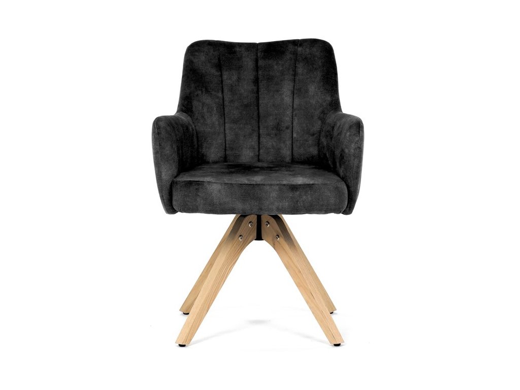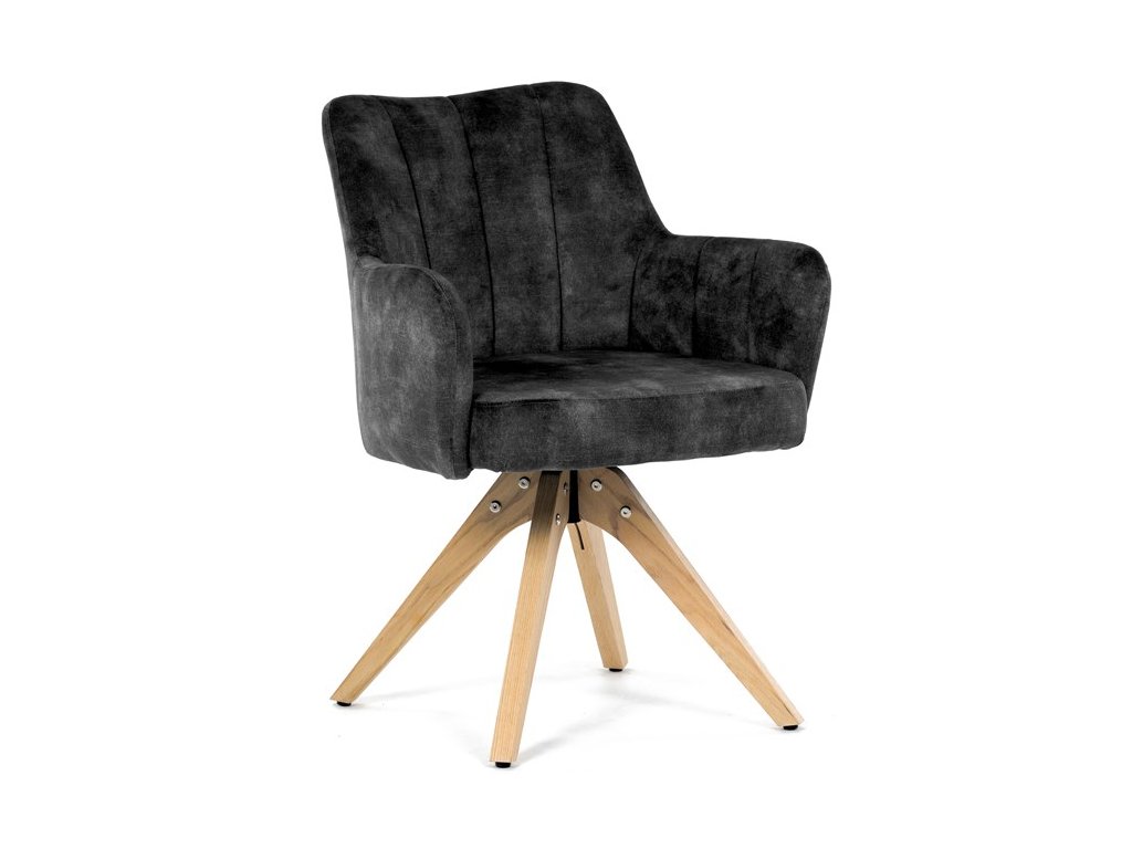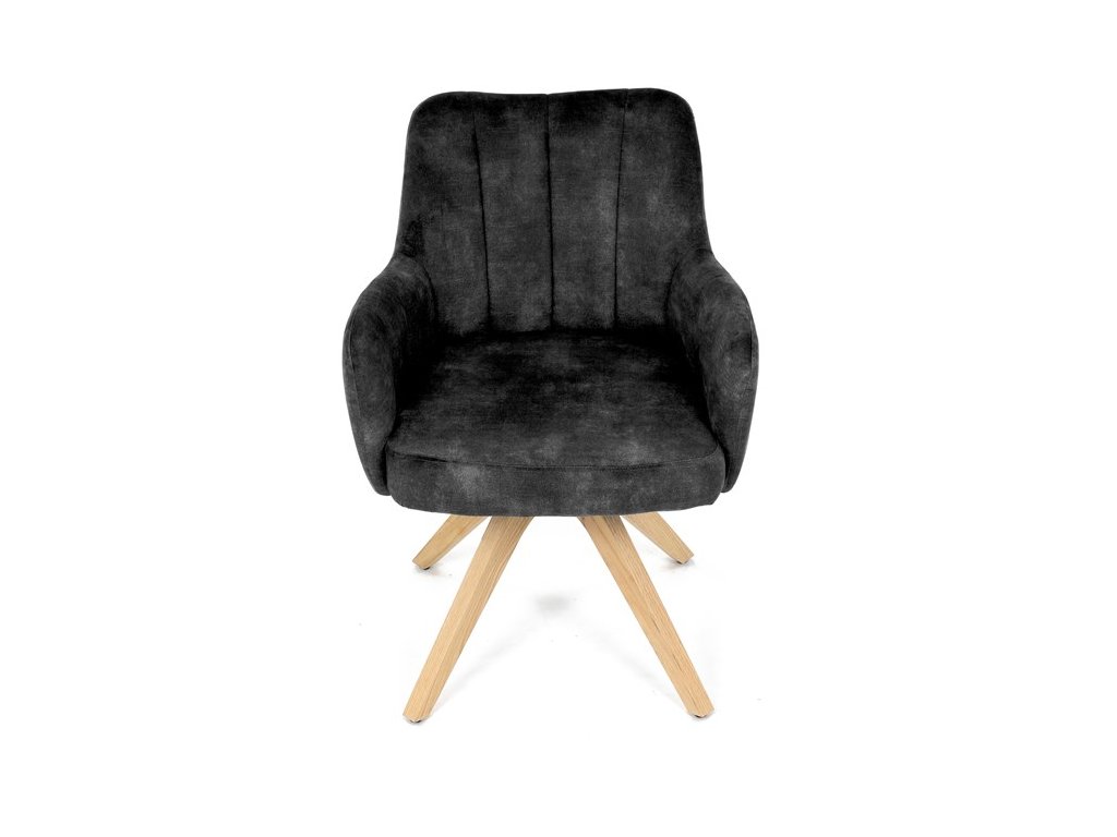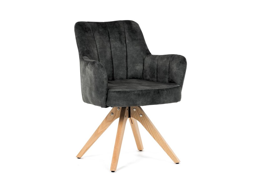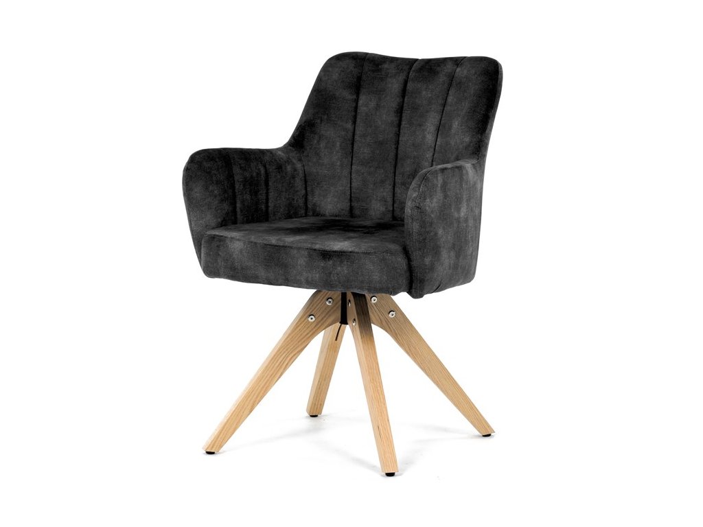 Elegantná čalúnená stolička od značky Autronic zaujme na prvý pohľad svojou čiernou zamatovou látkou, ktorá dodáva interiéru moderný šmrnc. Masívne nohy v prírodnej farbe vytvárajú stabilný základ a skvele harmonizujú s celkovým designom. Komfortné podrúčky zaistia pohodlie pri sedení. Navyše, integrovaný 360 ° otočný mechanizmus poskytuje maximálnu flexibilitu a pohybový komfort. Ideálna voľba pre štýlové aj funkčné bývanie.