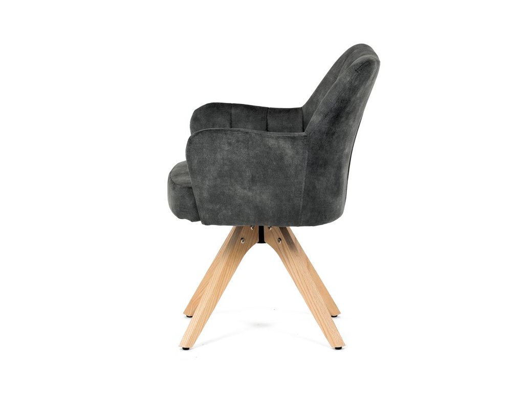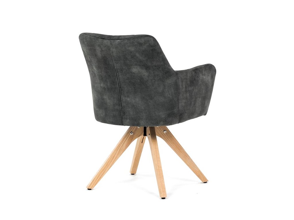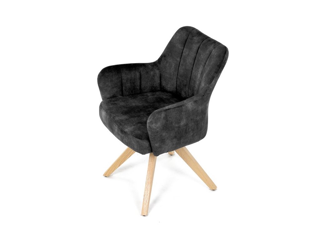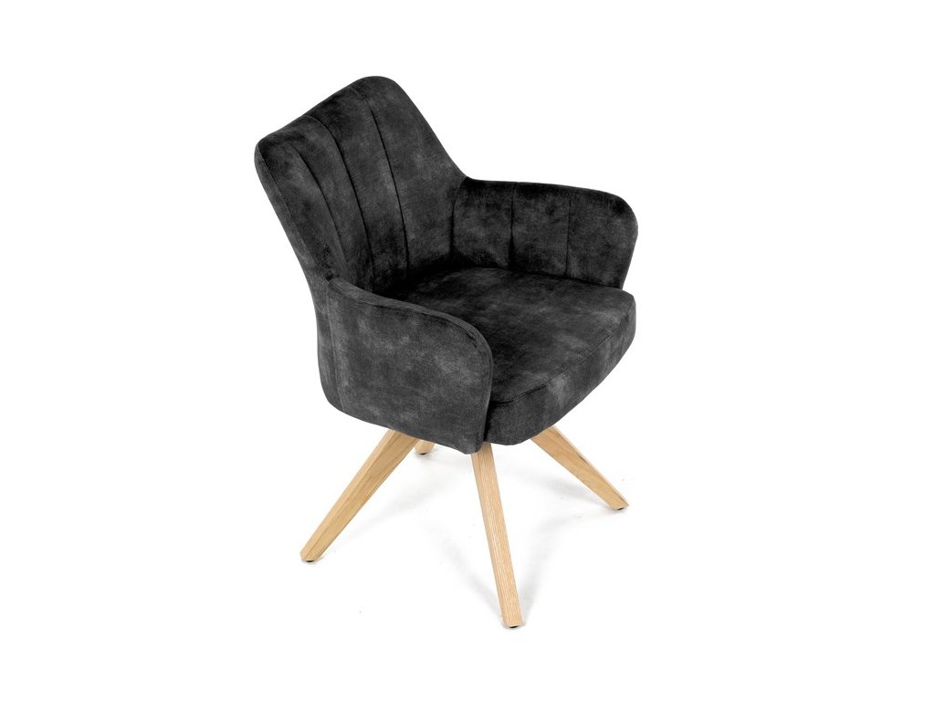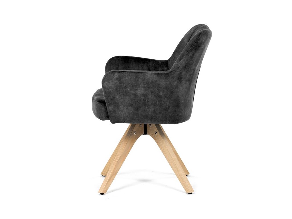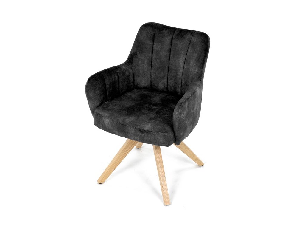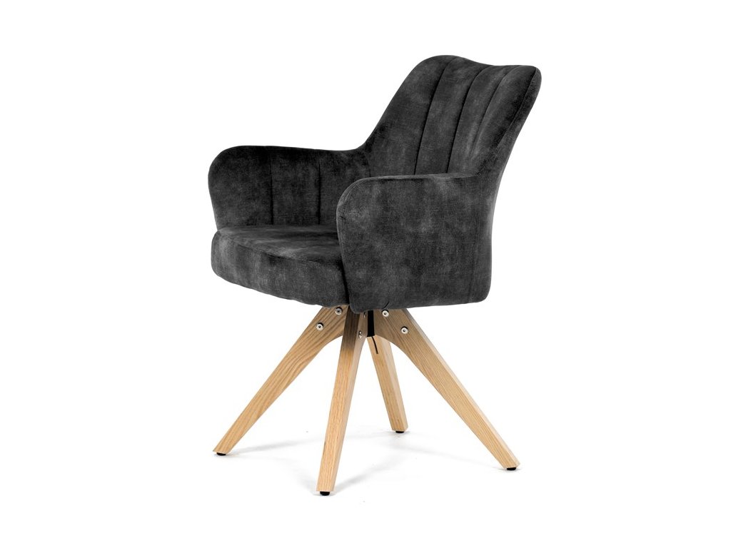 Elegantná čalúnená stolička od značky Autronic zaujme na prvý pohľad svojou čiernou zamatovou látkou, ktorá dodáva interiéru moderný šmrnc. Masívne nohy v prírodnej farbe vytvárajú stabilný základ a skvele harmonizujú s celkovým designom. Komfortné podrúčky zaistia pohodlie pri sedení. Navyše, integrovaný 360 ° otočný mechanizmus poskytuje maximálnu flexibilitu a pohybový komfort. Ideálna voľba pre štýlové aj funkčné bývanie.