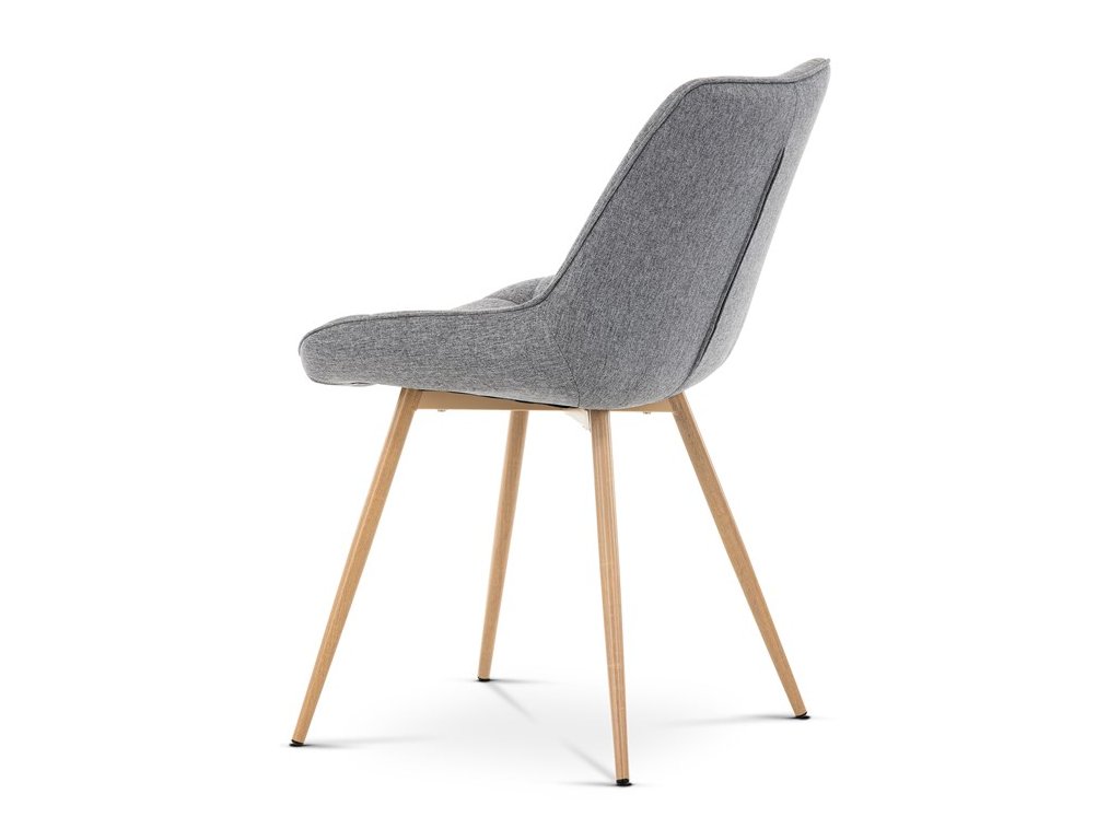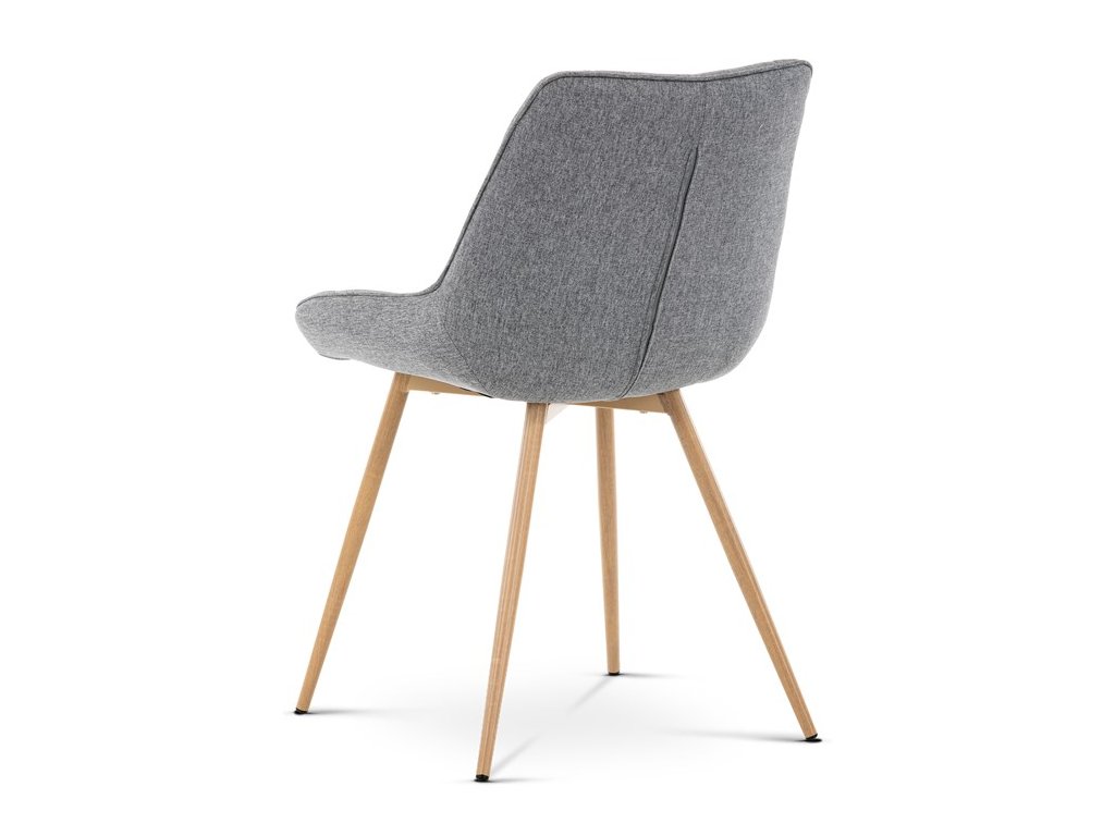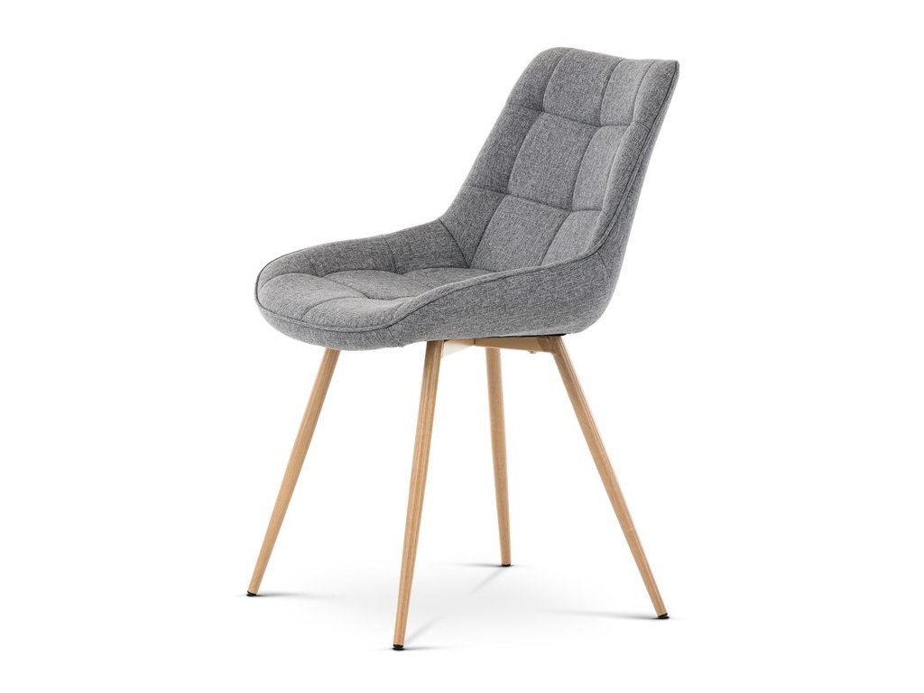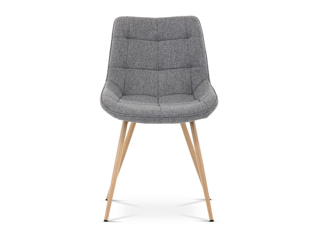 Jedálenská stolička CT-394 GREY2 spája moderný dizajn s pohodlím vďaka čalúneniu zo sivej látky s výrazným dizajnovým prešitím, ktoré zvýrazňuje tvarované sedadlo a operadlo. Pevné kovové nohy v dekore dubu zabezpečujú stabilitu a dlhú životnosť, pričom ich povrchová úprava dodáva stoličke prírodný vzhľad. Stolička nemá podrúčky ani otočný mechanizmus, čo ju robí praktickou a ľahko umiestniteľnou do rôznych priestorov. Ergonomicky tvarované sedadlo podporuje pohodlné sedenie pri jedle. Vďaka kvalitnému spracovaniu a použitým materiálom je stolička vhodná na každodenné používanie v domácnostiach aj komerčných priestoroch.
