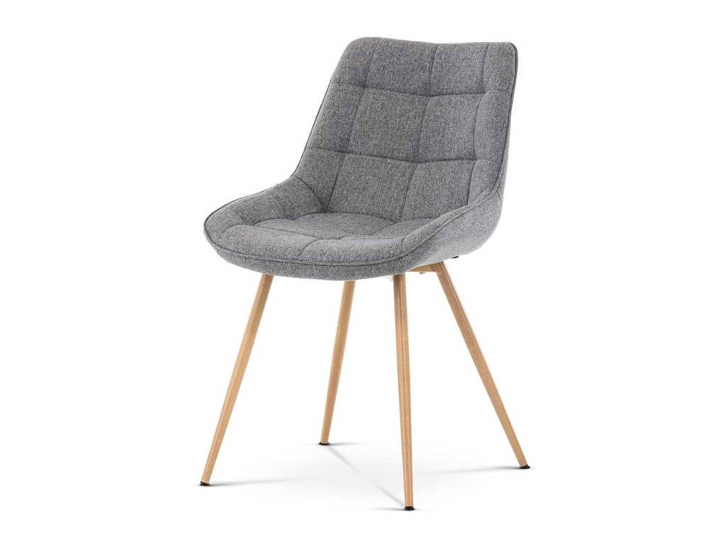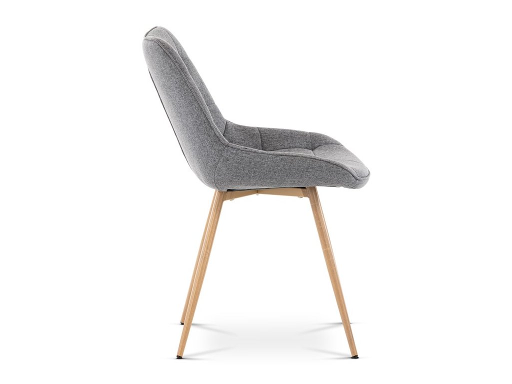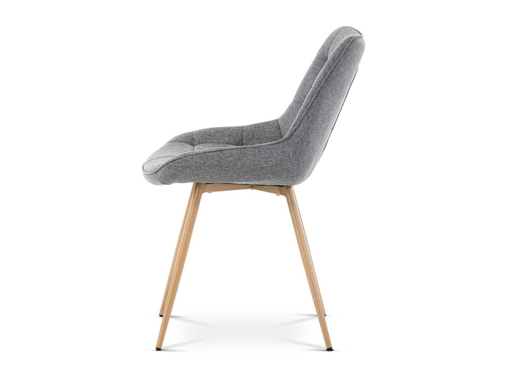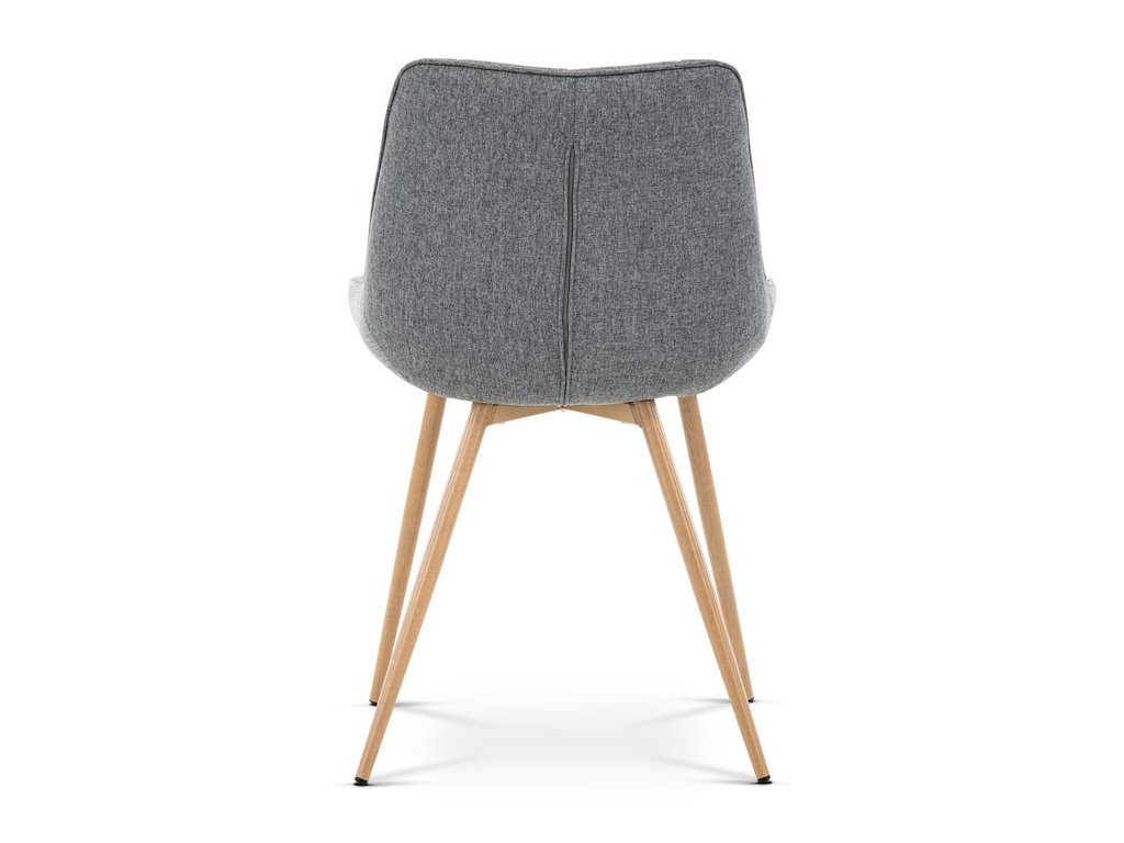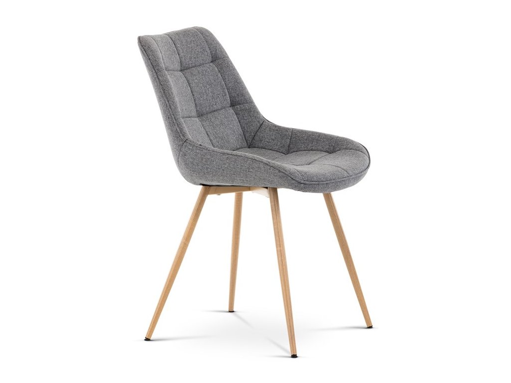 Jedálenská stolička CT-394 GREY2 spája moderný dizajn s pohodlím vďaka čalúneniu zo sivej látky s výrazným dizajnovým prešitím, ktoré zvýrazňuje tvarované sedadlo a operadlo. Pevné kovové nohy v dekore dubu zabezpečujú stabilitu a dlhú životnosť, pričom ich povrchová úprava dodáva stoličke prírodný vzhľad. Stolička nemá podrúčky ani otočný mechanizmus, čo ju robí praktickou a ľahko umiestniteľnou do rôznych priestorov. Ergonomicky tvarované sedadlo podporuje pohodlné sedenie pri jedle. Vďaka kvalitnému spracovaniu a použitým materiálom je stolička vhodná na každodenné používanie v domácnostiach aj komerčných priestoroch.