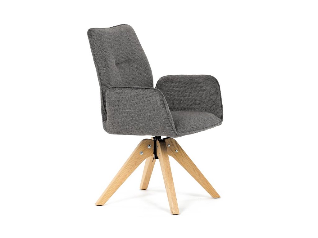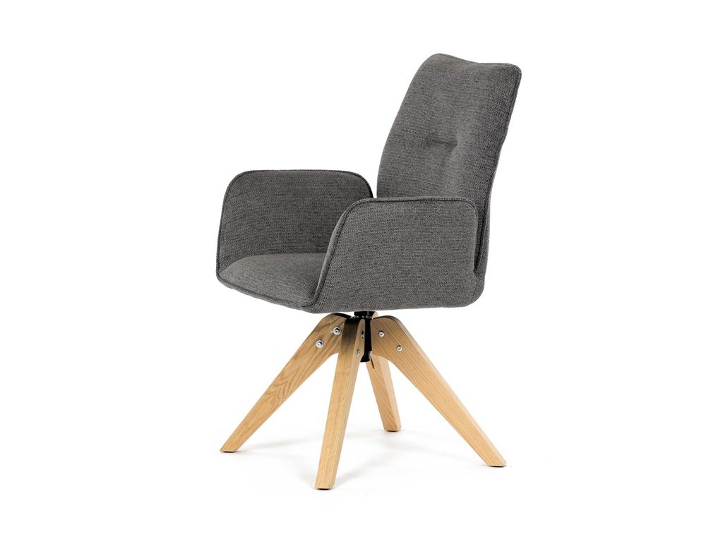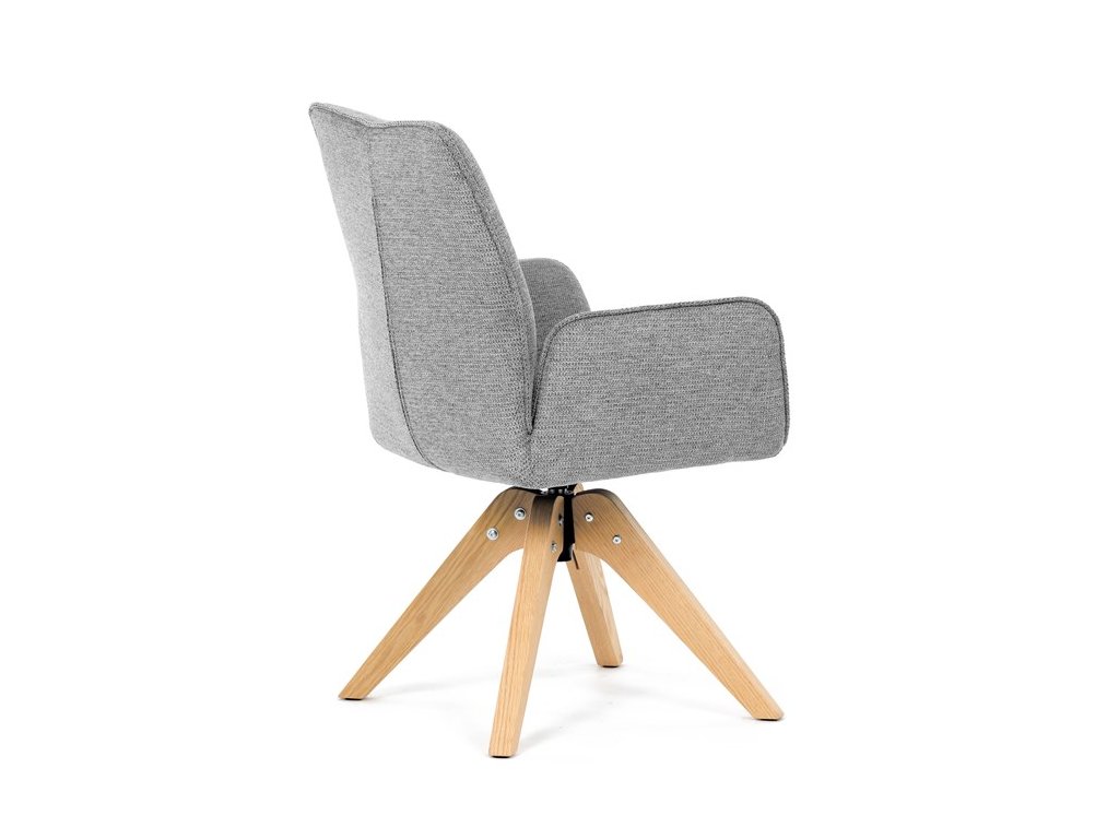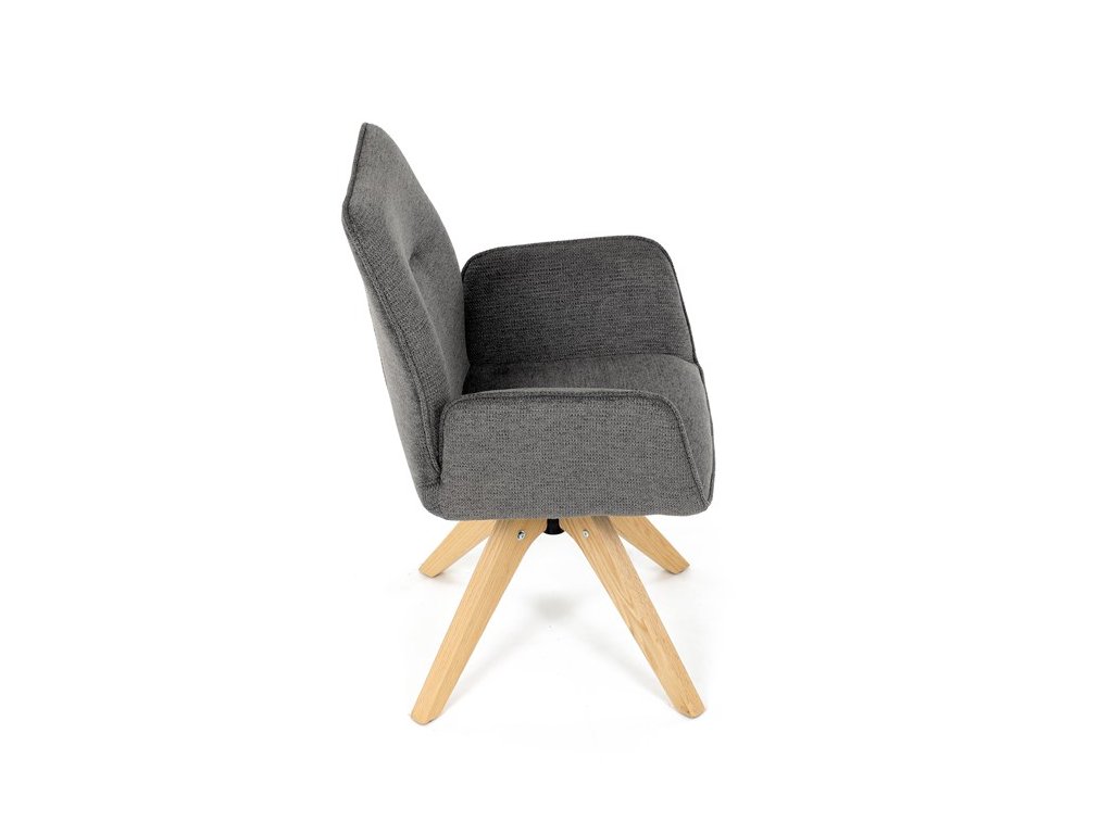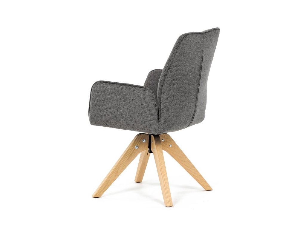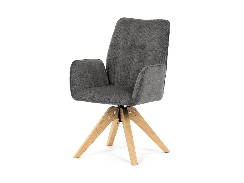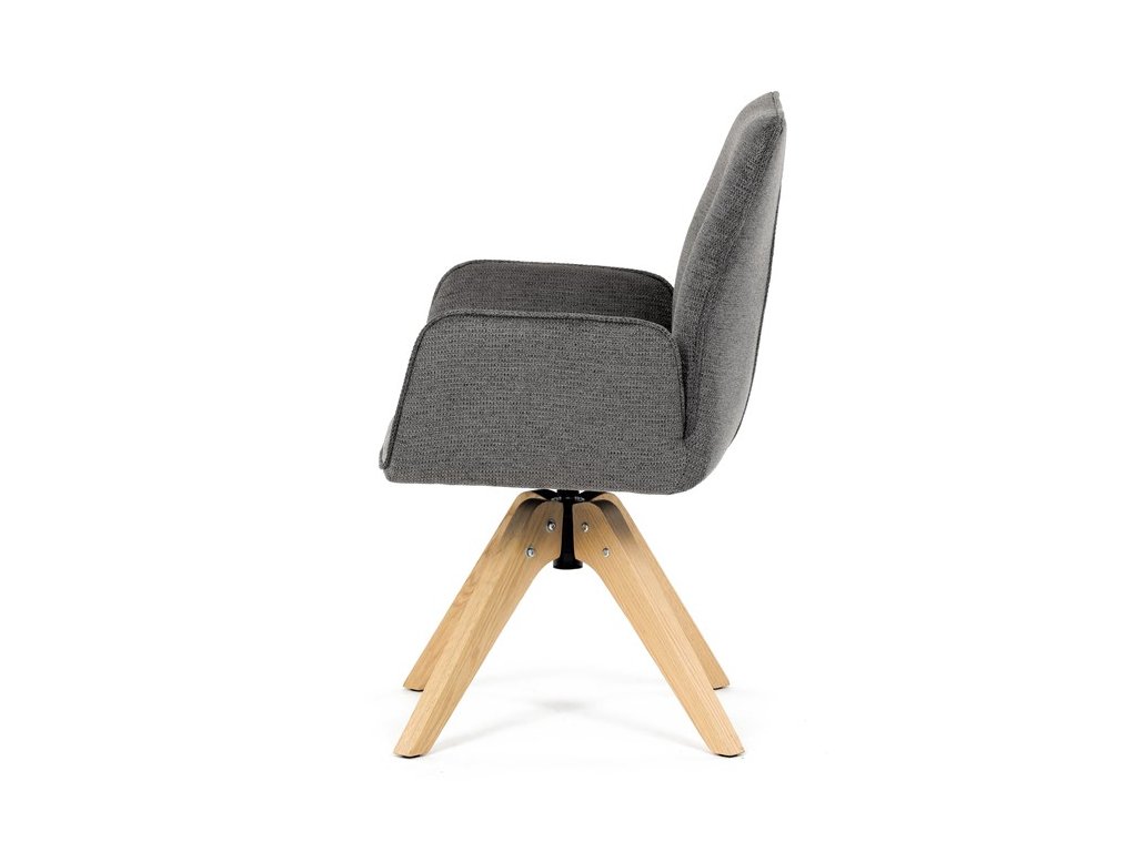 Štýlová jedálenská stolička značky Autronic v modernom dizajne, ktorá kombinuje komfort a eleganciu. Jej pohodlné sedadlo aj operadlo sú čalúnené vodeodolnou látkou v príjemnom tmavo šedom odtieni, čo z nej robí skvelý doplnok do akéhokoľvek interiéru. Masívne drevené nohy v prírodnej farbe dodávajú stoličke stabilitu a odolnosť, zatiaľ čo otočný mechanizmus s funkciou 360 ° prináša užívateľský komfort. Táto jedálenská stolička je ideálna nielen do domácností, ale aj do kaviarní či reštaurácií, kde je požadovaný moderný a funkčný nábytok.