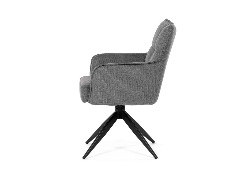 Elegantná otočná jedálenská stolička značky Autronic prináša do vašej jedálne pohodlie aj štýl. Šedý poťah z vodeodolnej látky zaručuje ľahkú údržbu a dlhú životnosť. Sedák je vybavený taštičkovými pružinami, ktoré zaisťujú maximálny komfort pri sedení. Stabilná centrálna kovová podnož v čiernej farbe podčiarkuje moderný dizajn a dodáva stoličke jedinečný vzhľad. Vďaka otočnému mechanizmu s vratnou funkciou je stolička praktická a flexibilná. Ideálna voľba pre moderné interiéry, ktoré kladú dôraz na funkčnosť a estetiku.