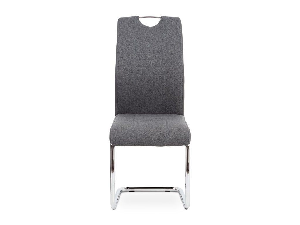 Jedálenská stolička v šedom prevedení kombinuje látku s ekokožou, ktorá je doplnená dizajnovým prešitím na sedáku aj operadle pre zvýraznenie moderného vzhľadu. Pevná podnož z chrómovaného kovu zabezpečuje stabilitu a zároveň dodáva stoličke ľahkosť a lesk. Ergonomicky tvarované operadlo podporuje pohodlné sedenie počas jedál aj dlhších posedení. Stolička nemá podrúčky ani otočný mechanizmus, čo ju robí kompaktnou a ľahko umiestniteľnou do rôznych priestorov. Materiály sú navrhnuté pre jednoduchú údržbu a dlhú životnosť.