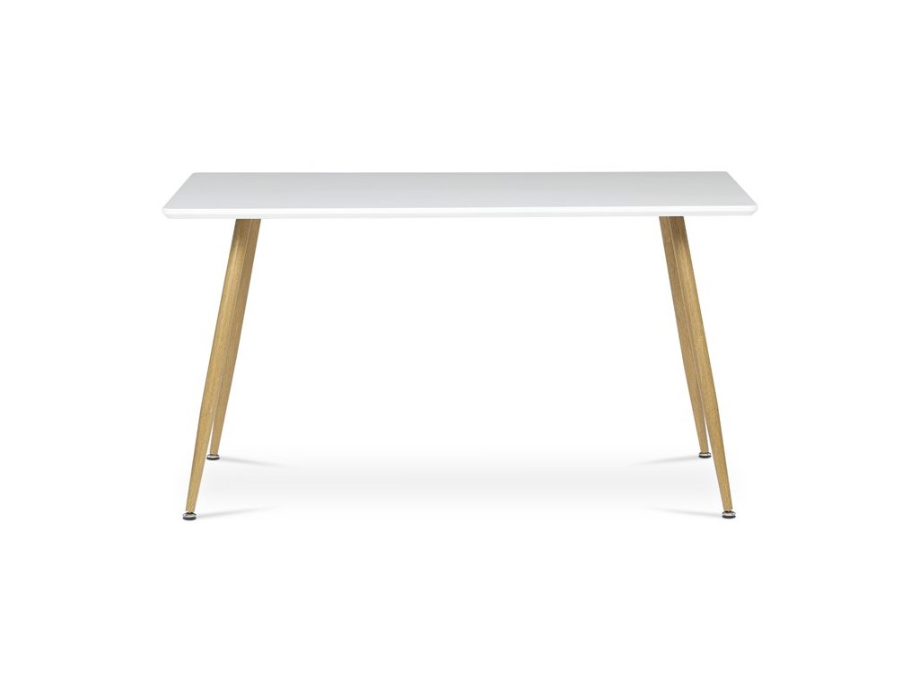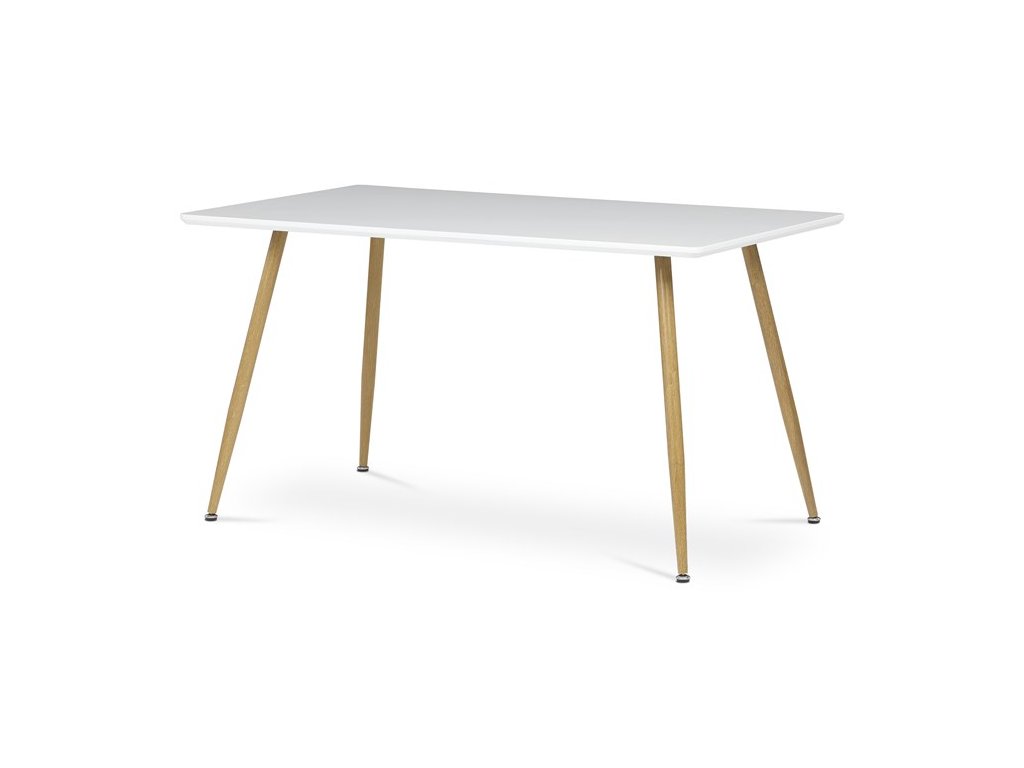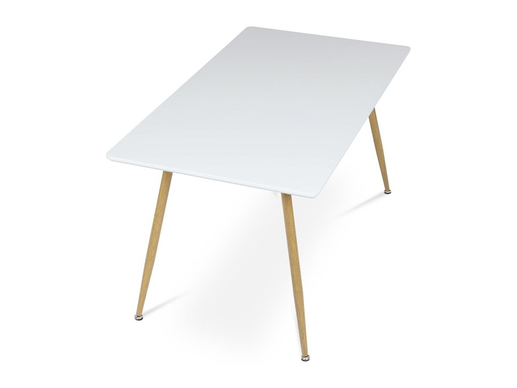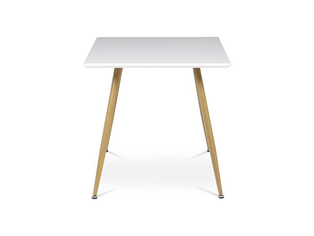Jedálenský stôl značky Autronic v minimalistickom škandinávskom štýle prináša ľahkosť a eleganciu do každého interiéru. Biela matná doska z MDF materiálu je odolná a ľahko udržiavateľná, zatiaľ čo stabilné kovové nohy v dekore prírodného dubu dodávajú stolu šarm. Vďaka svojmu kompaktnému rozmeru je ideálny pre menšie jedálne alebo kuchyne. Praktické kónické nohy s kyvnými klzákmi zaistia stabilitu aj na nerovnom povrchu. Tento stôl je perfektnou voľbou pre tých, ktorí hľadajú funkčnosť spojenú s moderným designom.