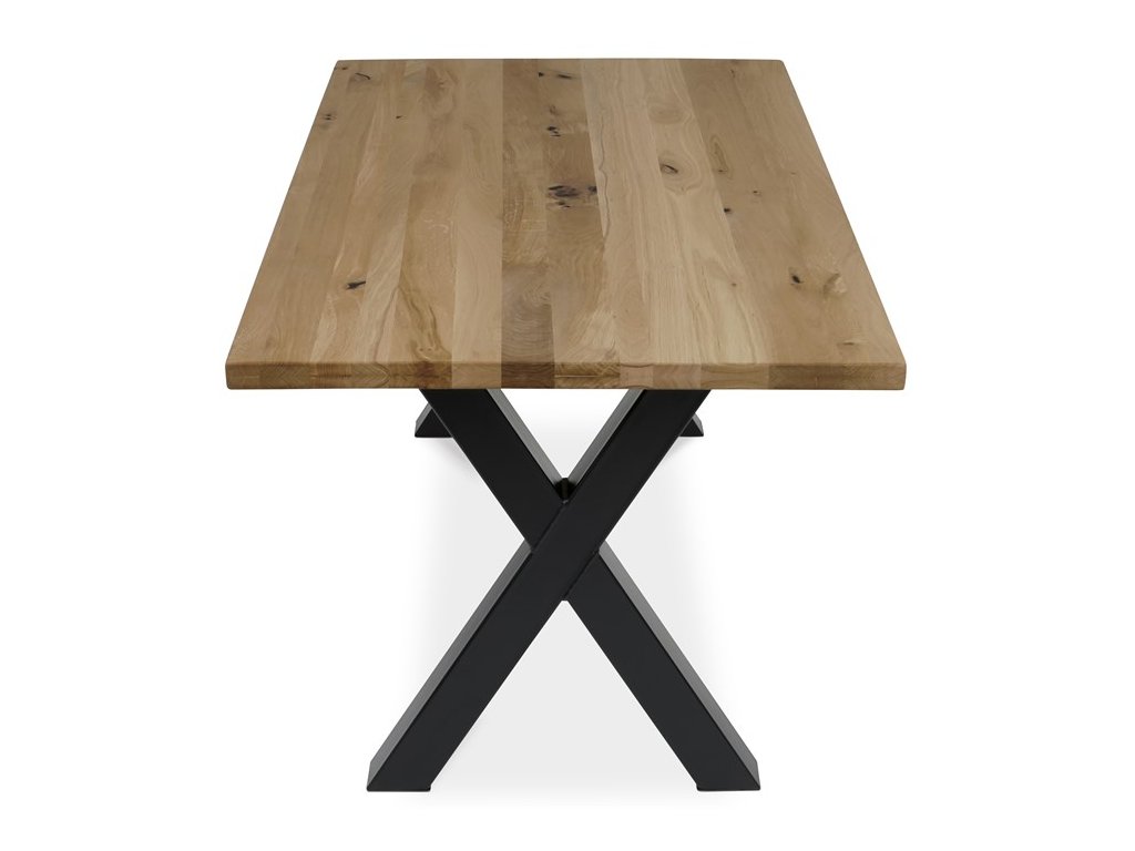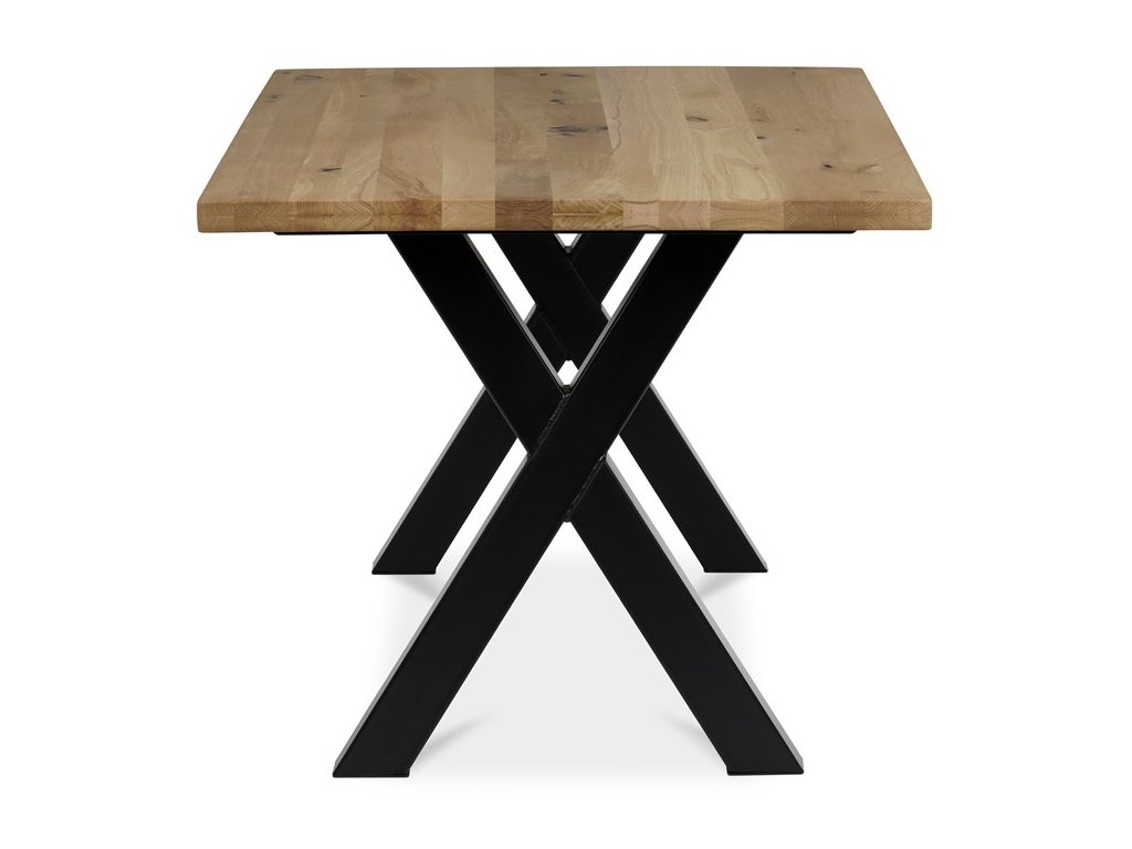Jedálenský stôl DS-X160 DUB kombinuje prírodnú krásu masívneho dubového dreva s modernou stabilitou kovovej podnože v čiernom prevedení. Doska stola s rozmermi 160 × 90 cm je vyrobená z masívu s olejovaným povrchom, ktorý zvýrazňuje prirodzenú štruktúru a farebné odtiene dubu, zároveň uľahčuje údržbu a chráni drevo. Robustná kovová podnož v tvare kríža zabezpečuje pevnosť a stabilitu celej konštrukcie, čo prispieva k dlhej životnosti a bezpečnému používaniu. Výška stola 75 cm zodpovedá štandardným ergonomickým parametrom pre pohodlné sedenie pri jedálenskom stole. Tento model je ideálnou voľbou pre tých, ktorí hľadajú kombináciu tradičného materiálu a industriálneho dizajnu s dôrazom na kvalitu a funkčnosť.