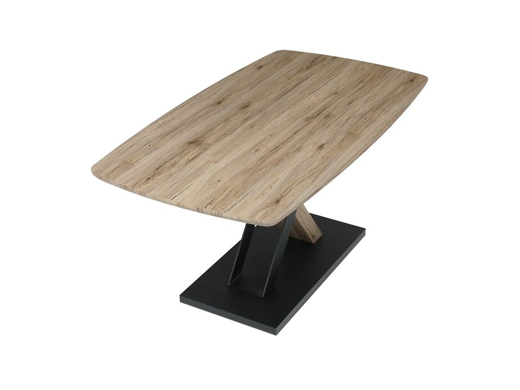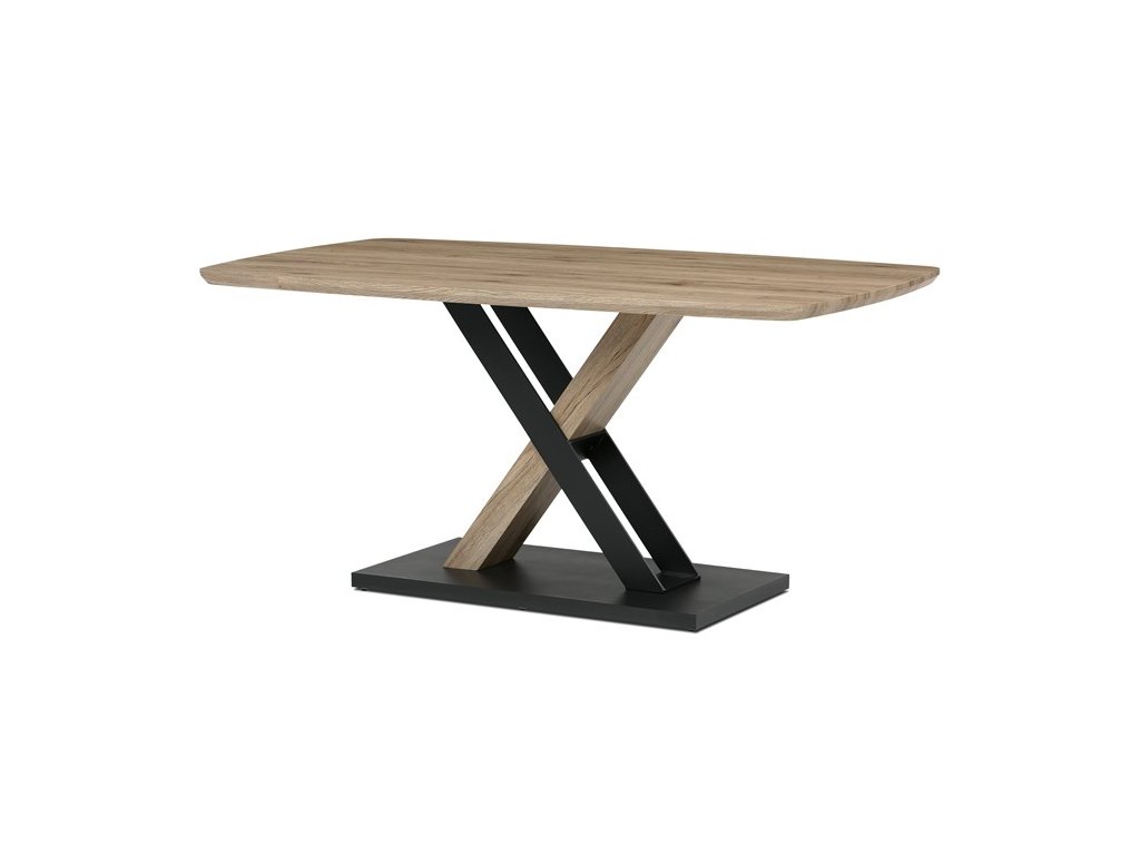 Moderný jedálenský stôl značky Autronic je skvelou voľbou pre štýlové interiéry. Jeho robustná doska z MDF v dekore duba San Remo dodáva priestoru prírodnú eleganciu, zatiaľ čo centrálna kovová podnož v kombinácii s MDF zaisťuje stabilitu a originálny vzhľad. Atypický zaoblený tvar dosky podčiarkuje jeho jedinečnosť, vďaka čomu sa stane stredobodom každej jedálne. Tento stôl je ideálny pre rodinné posedenia aj slávnostné večere, pričom svojim nadčasovým dizajnom pozdvihne každý interiér.