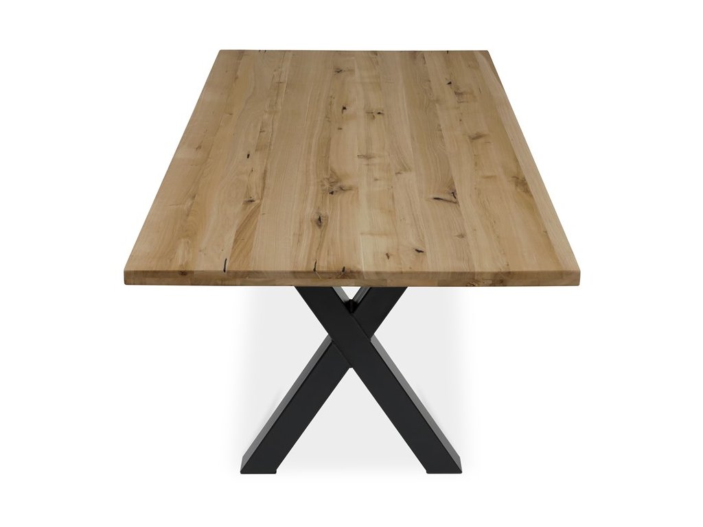 Jedálenský stôl DS-X200 DUB kombinuje prírodnú krásu masívneho dubového dreva s modernou stabilitou kovovej podnože v čiernom prevedení. Doska stola je vyrobená z masívneho dubu s olejovaným povrchom, ktorý zvýrazňuje prirodzenú štruktúru dreva a zároveň uľahčuje údržbu. Robustná kovová podnož v tvare kríža zabezpečuje pevnú oporu a stabilitu počas používania. Rozmery 200 × 100 × 75 cm poskytujú dostatok priestoru pre pohodlné stolovanie aj väčší počet osôb. Stôl je navrhnutý bez rozkladacej funkcie, čo podčiarkuje jeho jednoduchý a nadčasový dizajn vhodný do rôznych interiérov.