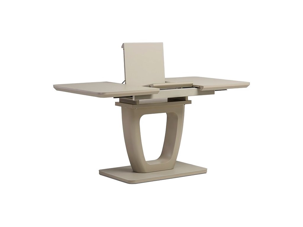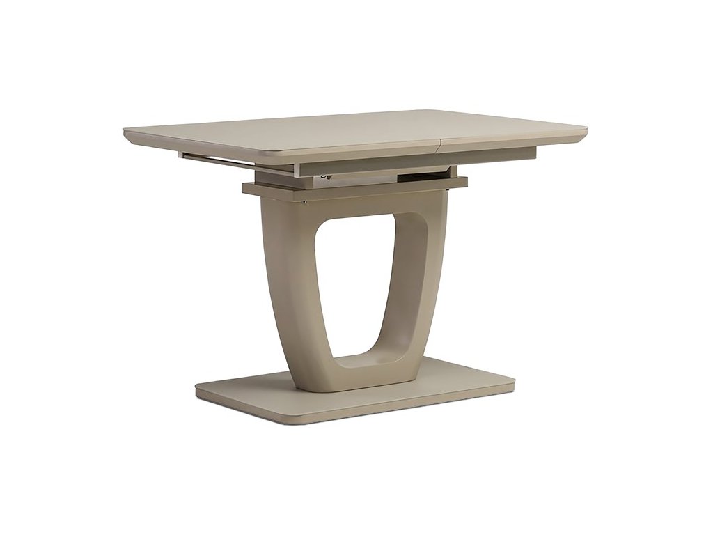 Jedálenský stôl s rozmermi 110x75 cm a možnosťou rozloženia o ďalších 40 cm ponúka praktické riešenie pre väčší počet stolujúcich. Doska je vyrobená z matného cappuccino skla s hrúbkou 4 mm, ktoré sa ľahko udržiava a je odolné voči bežnému opotrebeniu. Stabilná podnož aj doska sú z MDF materiálu v odtieni cappuccino mat, čo dodáva stolíku moderný a zároveň príjemný vzhľad. Rozkladací mechanizmus je intuitívny a umožňuje rýchle zväčšenie pracovnej plochy bez nutnosti zložitej manipulácie. Nosnosť stola zodpovedá bežnému domácemu používaniu a jeho dizajn je vhodný do moderných aj klasických interiérov.