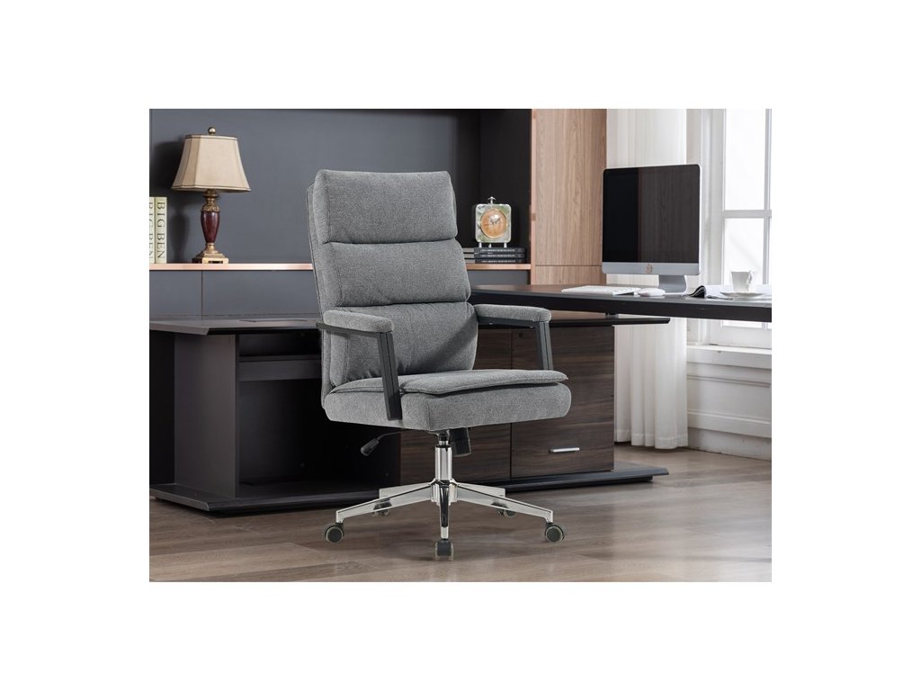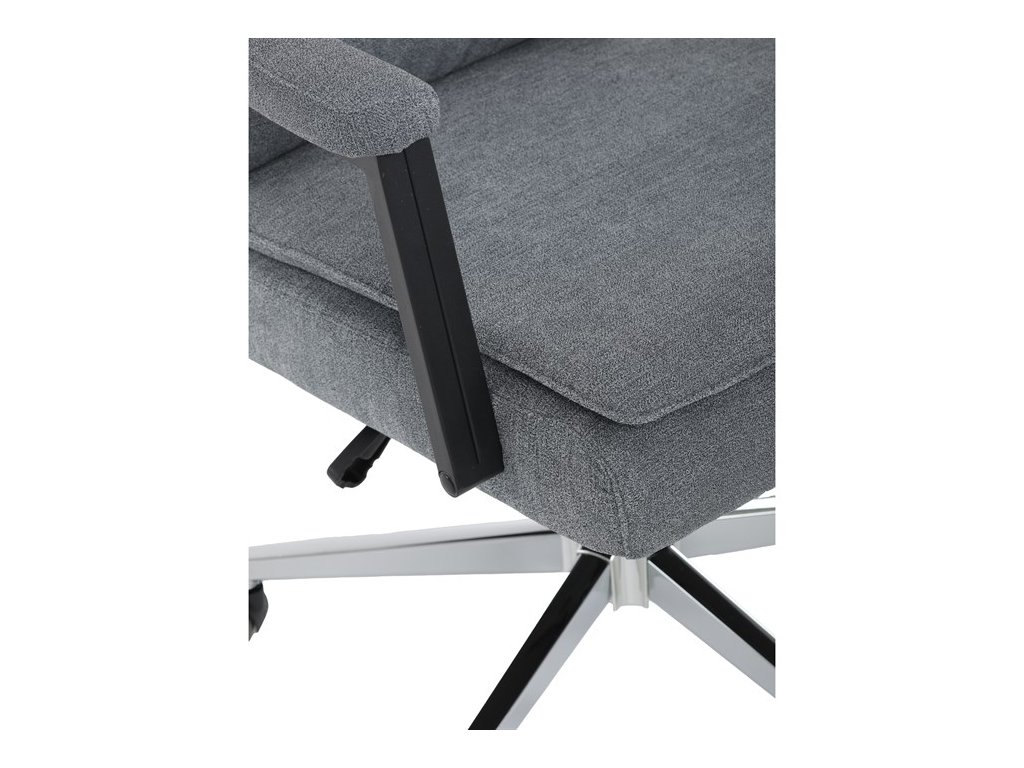 Elegantné kancelárske kreslo značky Autronic ponúka ideálne spojenie pohodlia a moderného designu. Poťah z hladkej látky v príjemnom odtieni šedej dodáva interiéru svieži a štýlový vzhľad, zatiaľ čo čalúnené podrúčky a dvojitý sedák zaručujú maximálny komfort aj pri dlhom sedení. Chrómovaný kríž a pevná konštrukcia dodávajú stoličke stabilitu a odolnosť. Vďaka hojdaciemu mechanizmu sa stolička prispôsobí vašim potrebám a zaistí potrebné uvoľnenie počas práce. Ideálna voľba pre moderné kancelárie či domáce pracovne.