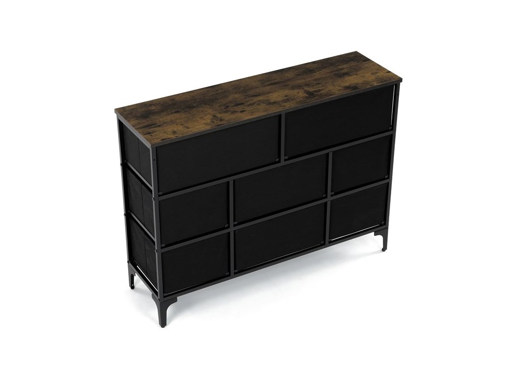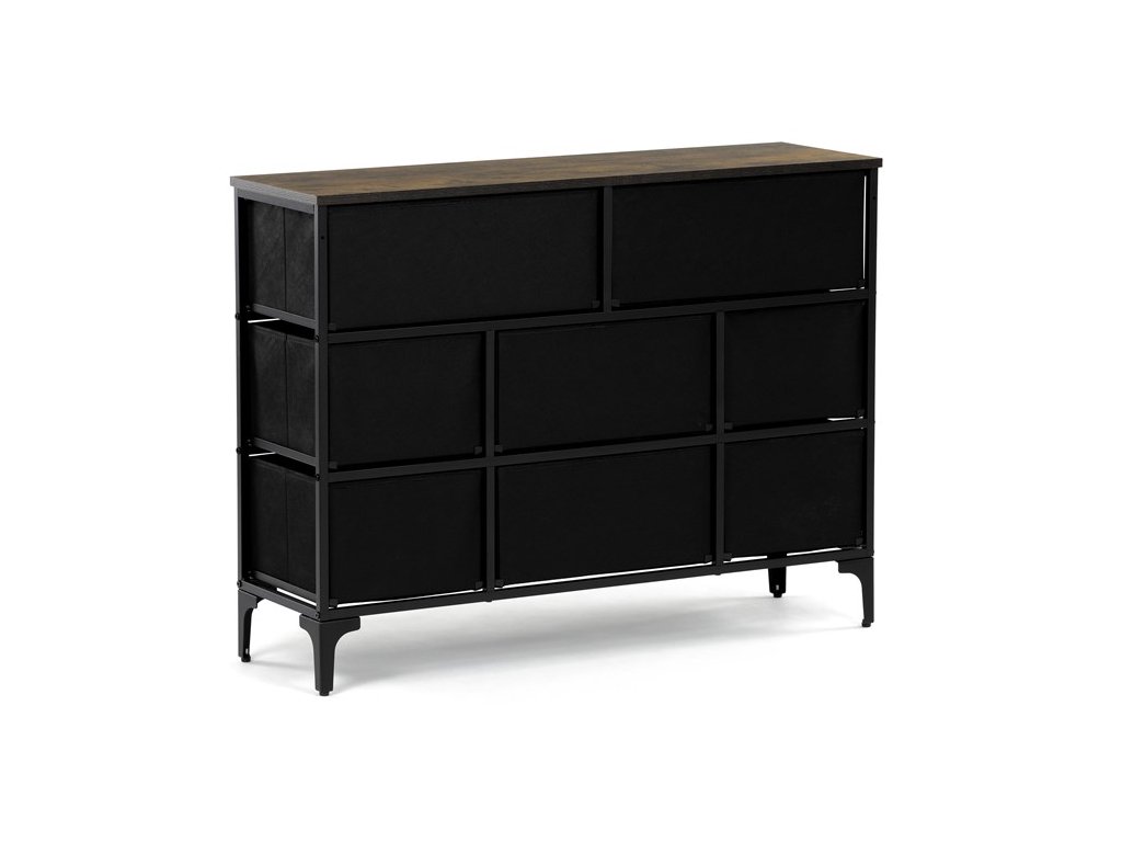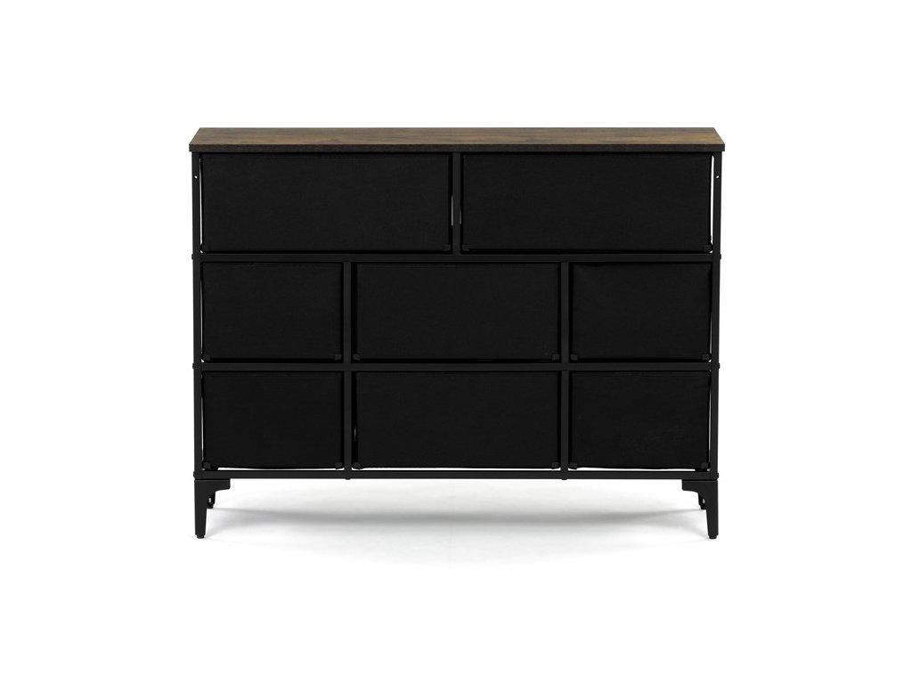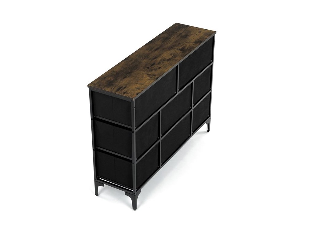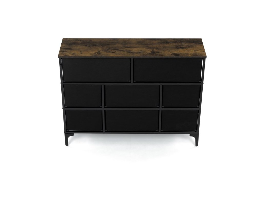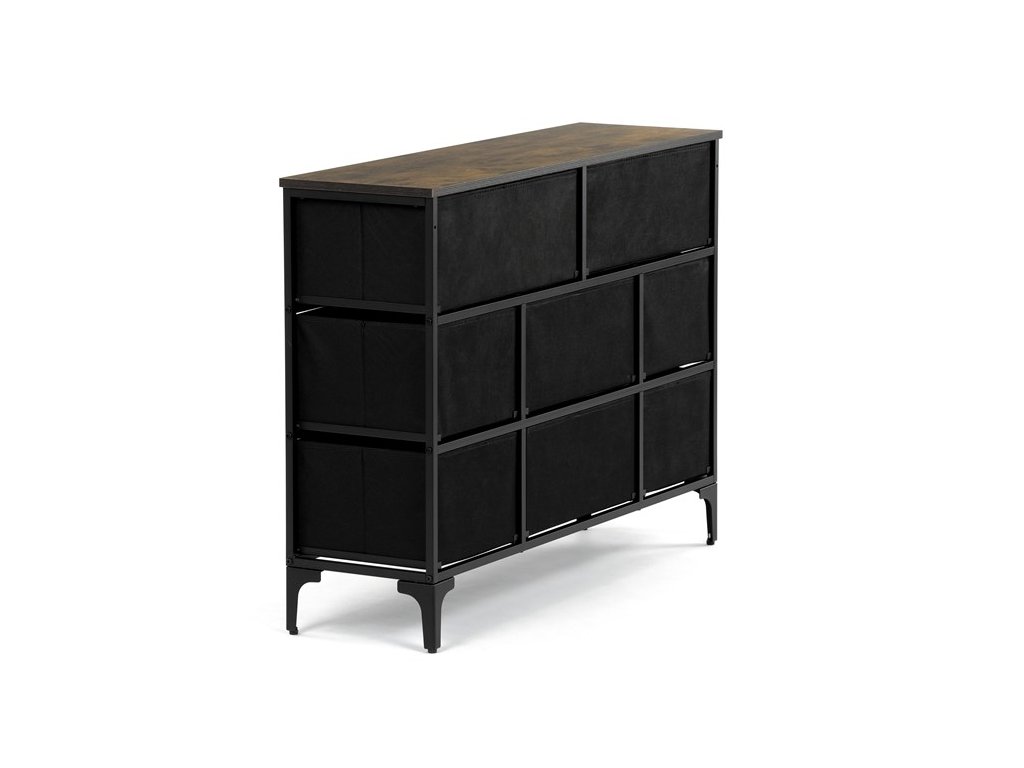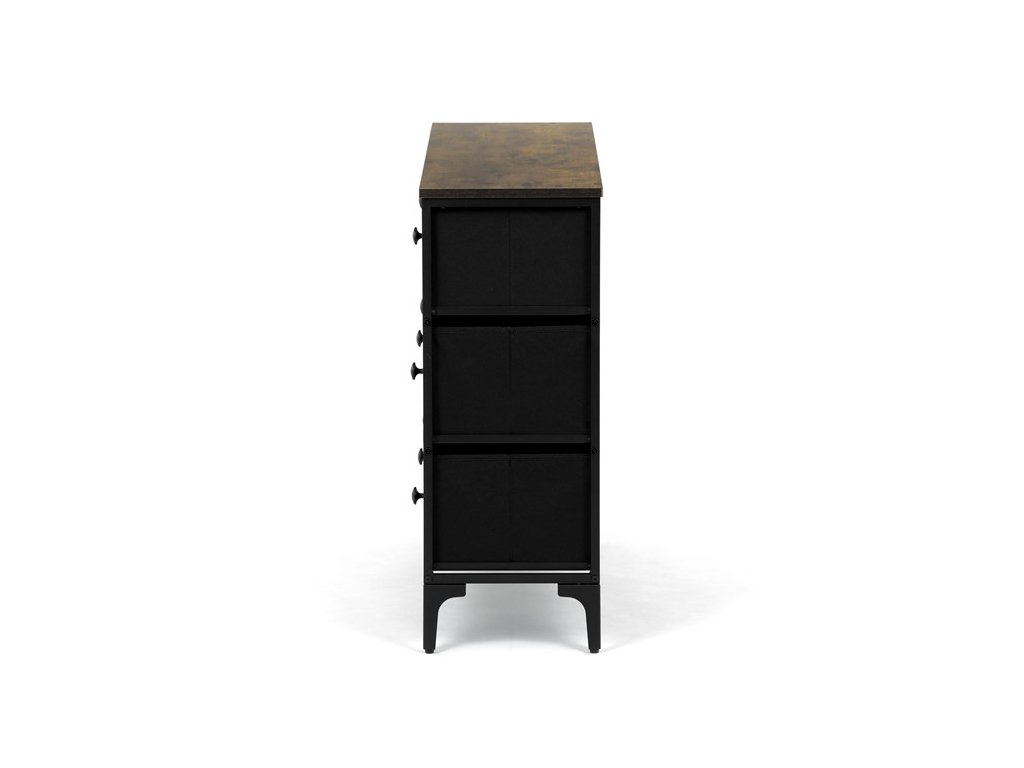Retro komoda značky Autronic prinesie do vášho interiéru jedinečný štýl a originalitu. Textilné čelá zásuviek s výplňou HDF a vintage potlačou navodzujú atmosféru starých amerických barov a jazzových klubov. Kombinácia čiernej kovovej konštrukcie, dosky v dekore starého dreva a ozdobných nôh dodáva nábytku robustný, ale zároveň elegantný vzhľad. Korpus zásuviek je vyrobený z netkanej textílie s výplňou HDF, čo zaisťuje ich ľahkosť a jednoduchú manipuláciu. Ideálny doplnok do obývacej izby alebo štýlovej kaviarne, kde sa stane neprehliadnuteľným prvkom.