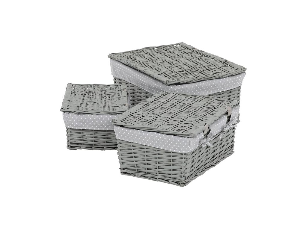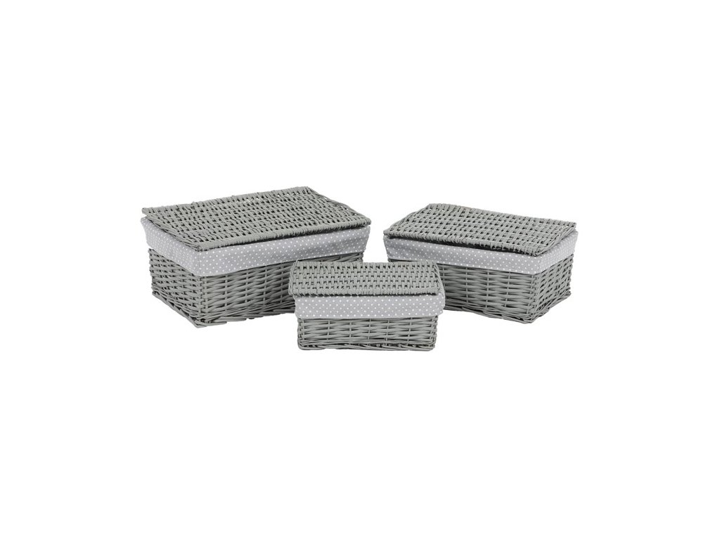 BONTEC Kôš regálový - prútený, šedý s látkou, cena za sadu 3 ks