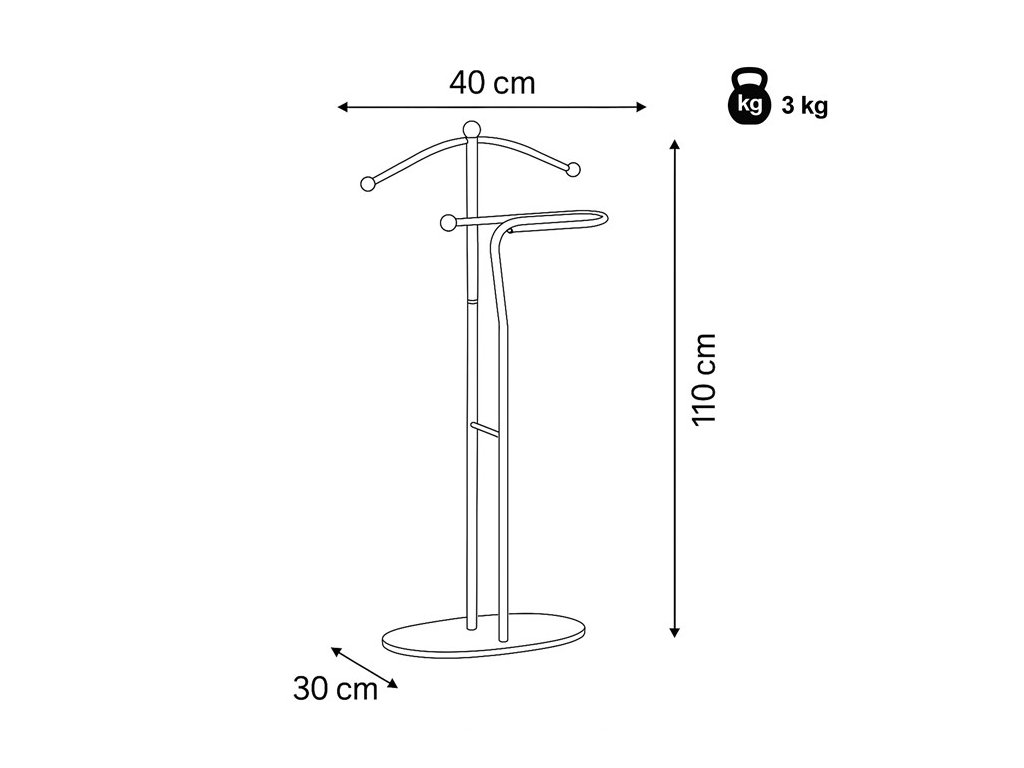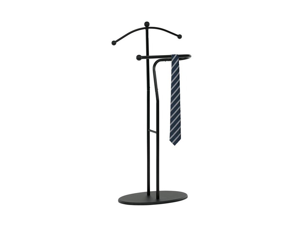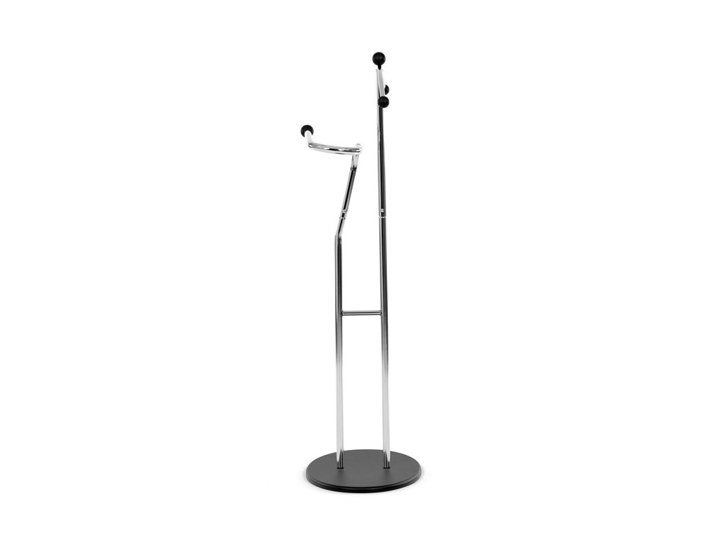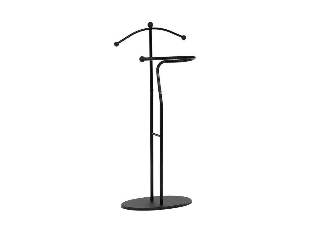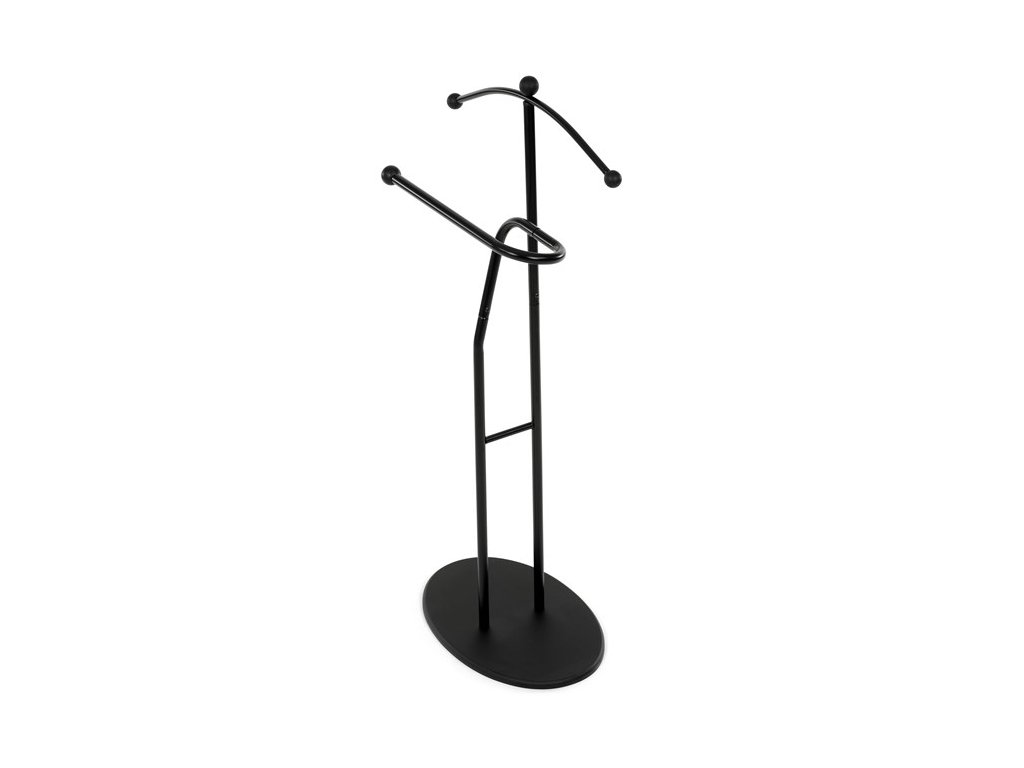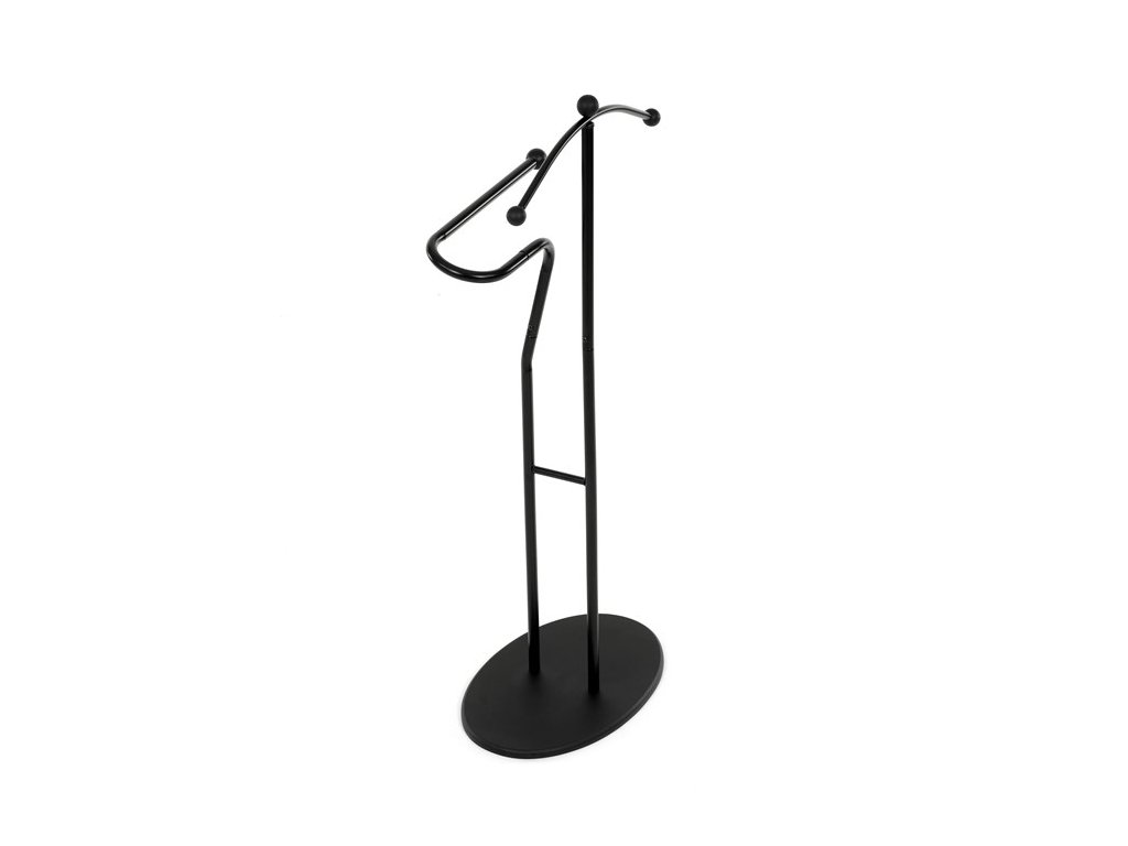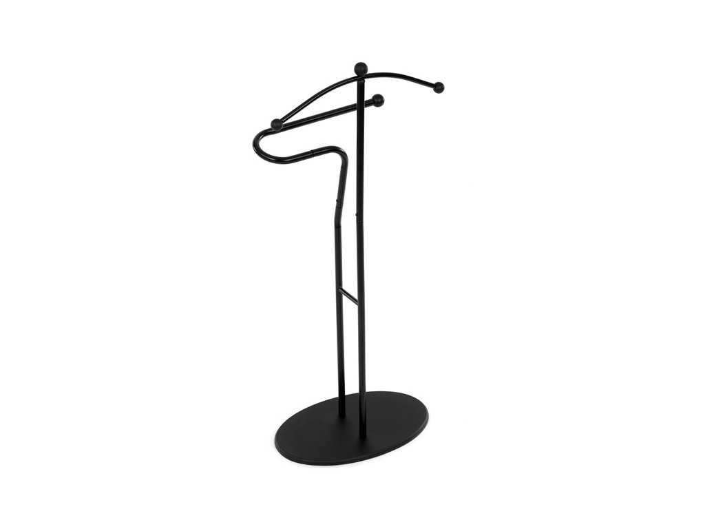 Elegantný nemý sluha značky Autronic je praktickým pomocníkom pre každú spálňu alebo šatňu. Minimalistický čierny design s kovovou konštrukciou ponúka pevnosť, odolnosť a dlhú životnosť. Ramienko a praktický držiak na nohavice alebo kravaty udržia vaše oblečenie vždy upravené a pripravené. Stabilná oválna základňa zaisťuje bezpečné postavenie a ľahko zapadne do moderného aj klasického interiéru.