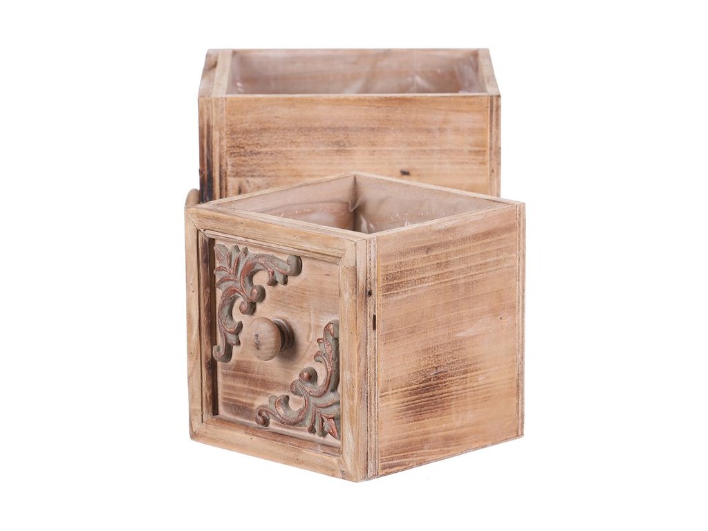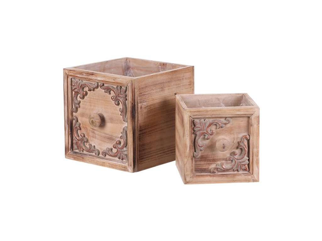BONTEC Obal na kvety - drevený šuplík, cena za sadu 2 ks