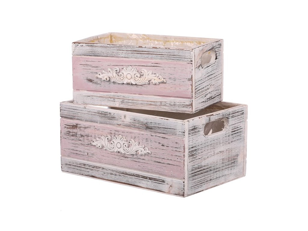 BONTEC Obal na kvety drevený - tvar šuplíka, fialový, cena za sadu 2 ks.