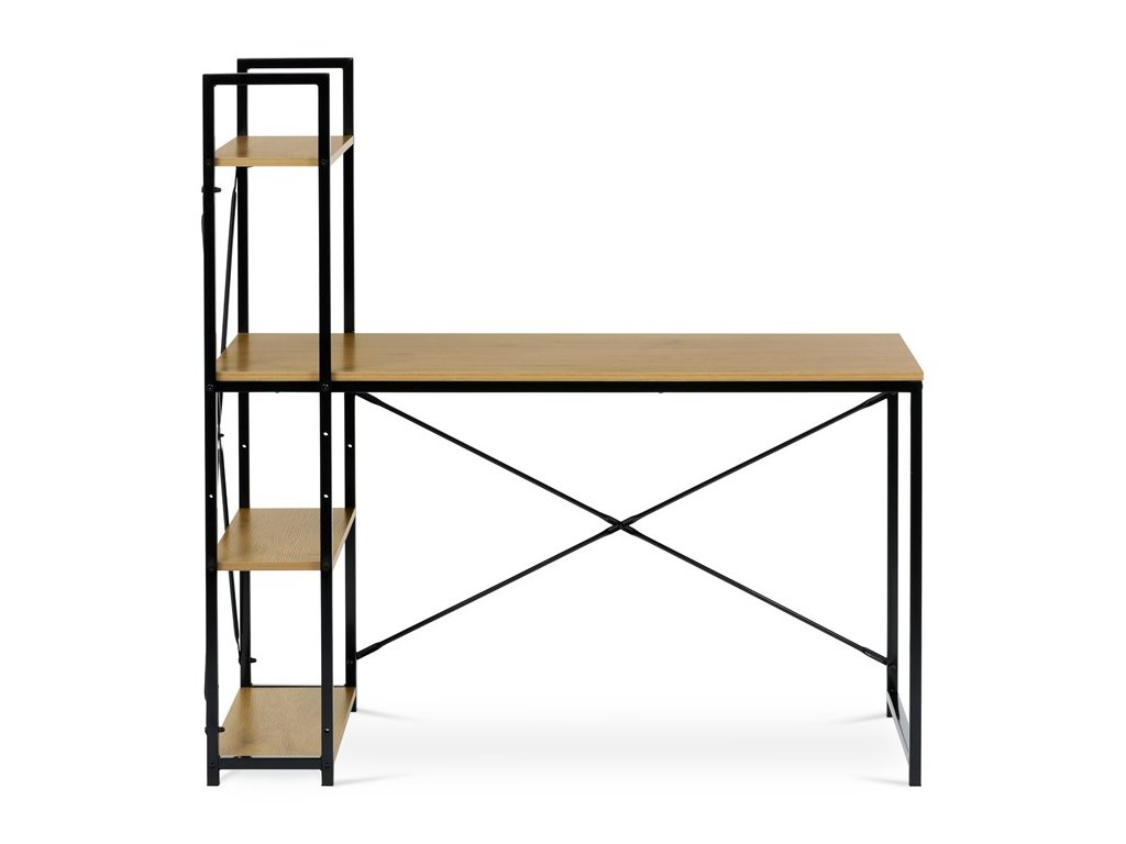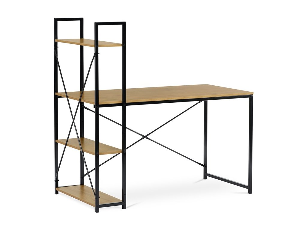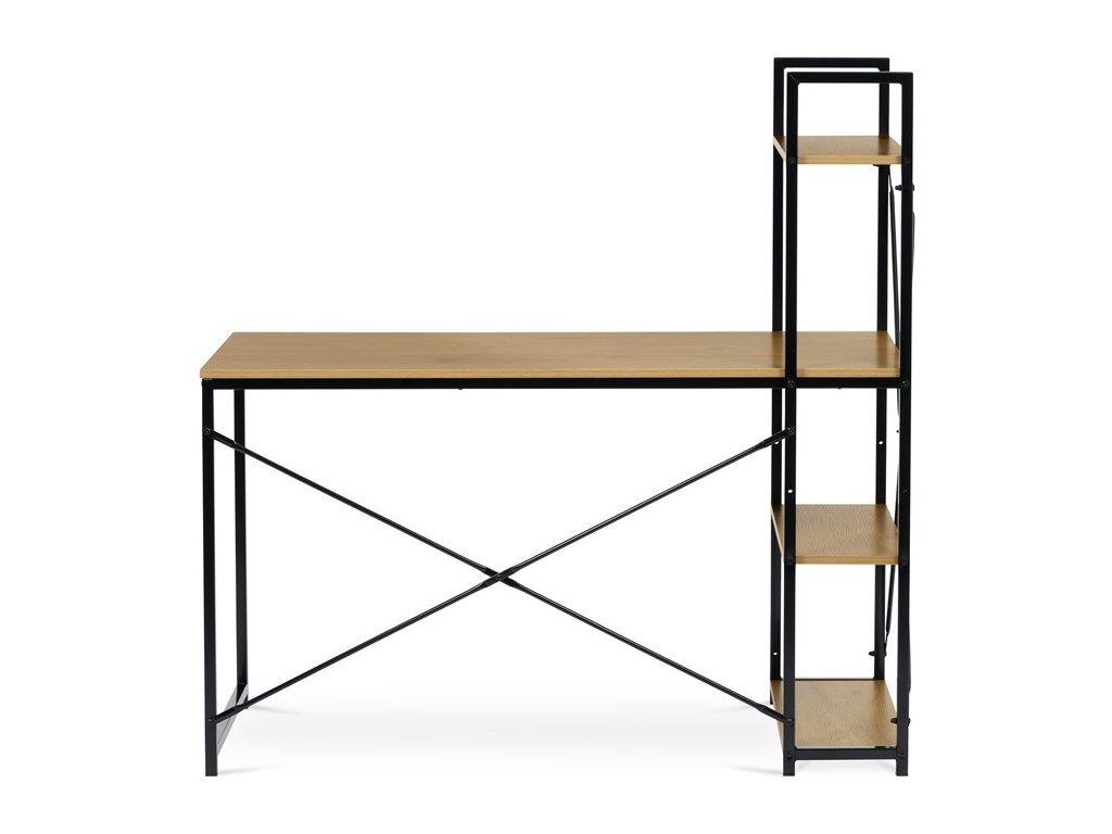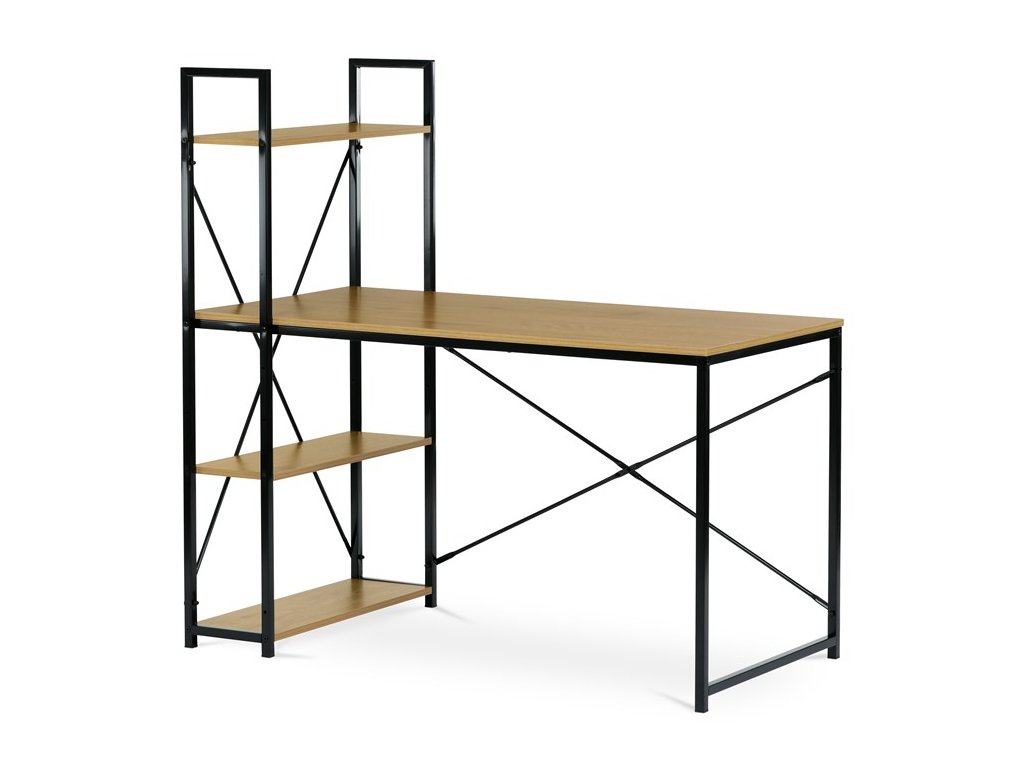 Pracovný stôl značky Autronic v industriálnom štýle kombinuje funkčnosť a moderný design. Hnedá MDF doska s dubovým dekorom a matnou úpravou prináša do interiéru teplý, prírodný vzhľad. Stabilná čierna kovová konštrukcia so štvorcovými nohami zaručuje pevnosť a odolnosť. Praktické polície po strane poskytujú dostatok úložného priestoru pre knihy, dokumenty alebo dekorácie, čo oceníte v každej pracovni. Stôl sa hodí do domácej kancelárie či pracovne a vďaka svojmu industriálnemu vzhľadu ľahko zapadne do moderných interiérov. Rozmer police: 60 x 21 cm.