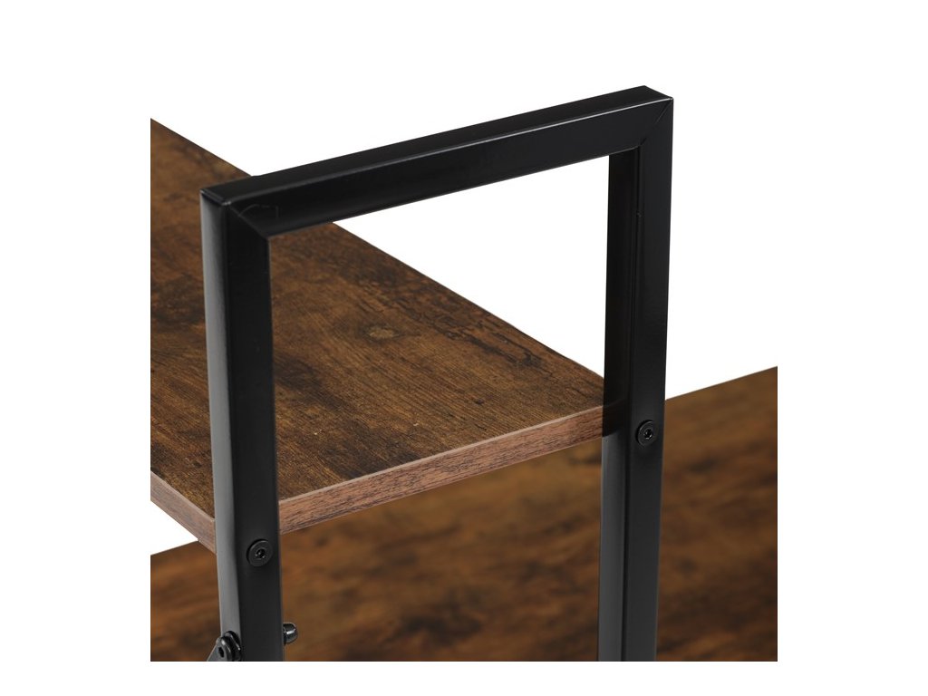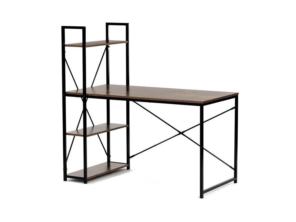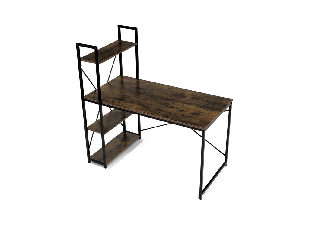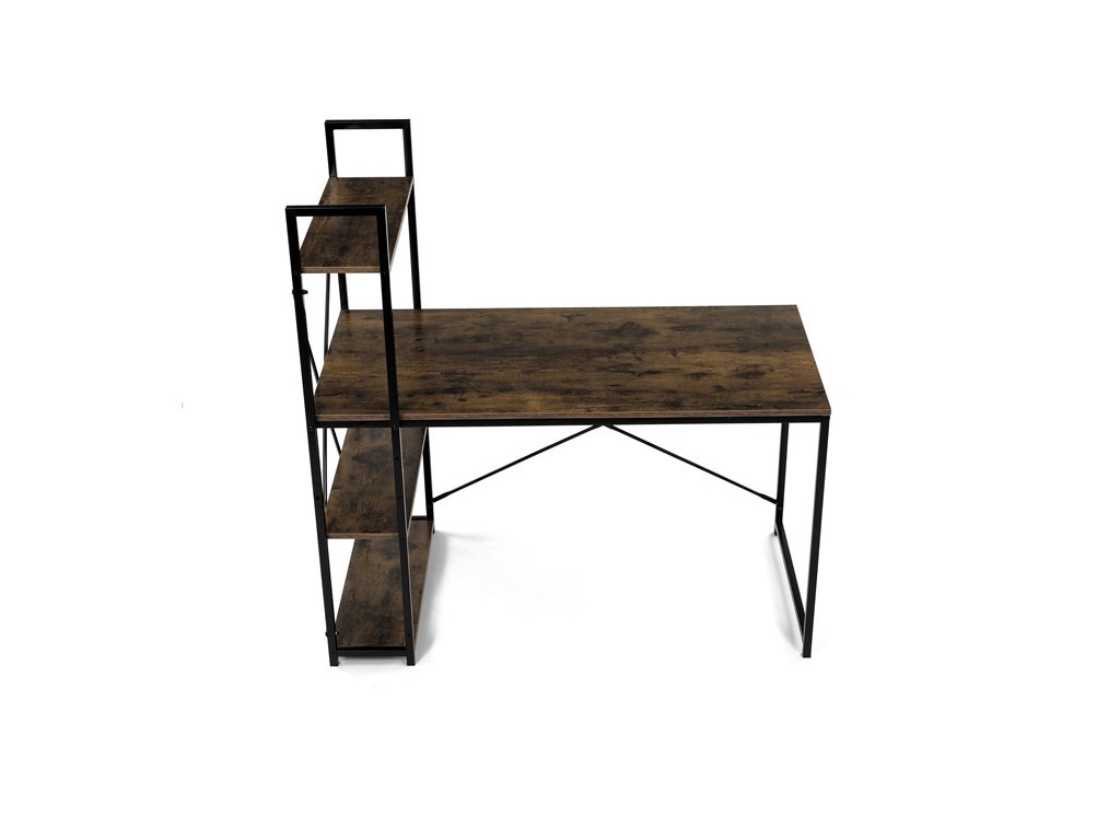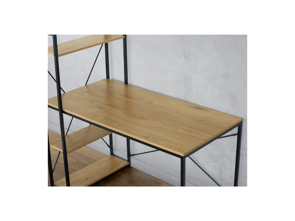 Pracovný stôl značky Autronic v industriálnom štýle kombinuje funkčnosť a moderný design. Hnedá MDF doska s dubovým dekorom a matnou úpravou prináša do interiéru teplý, prírodný vzhľad. Stabilná čierna kovová konštrukcia so štvorcovými nohami zaručuje pevnosť a odolnosť. Praktické polície po strane poskytujú dostatok úložného priestoru pre knihy, dokumenty alebo dekorácie, čo oceníte v každej pracovni. Stôl sa hodí do domácej kancelárie či pracovne a vďaka svojmu industriálnemu vzhľadu ľahko zapadne do moderných interiérov. Rozmer police: 60 x 21 cm.