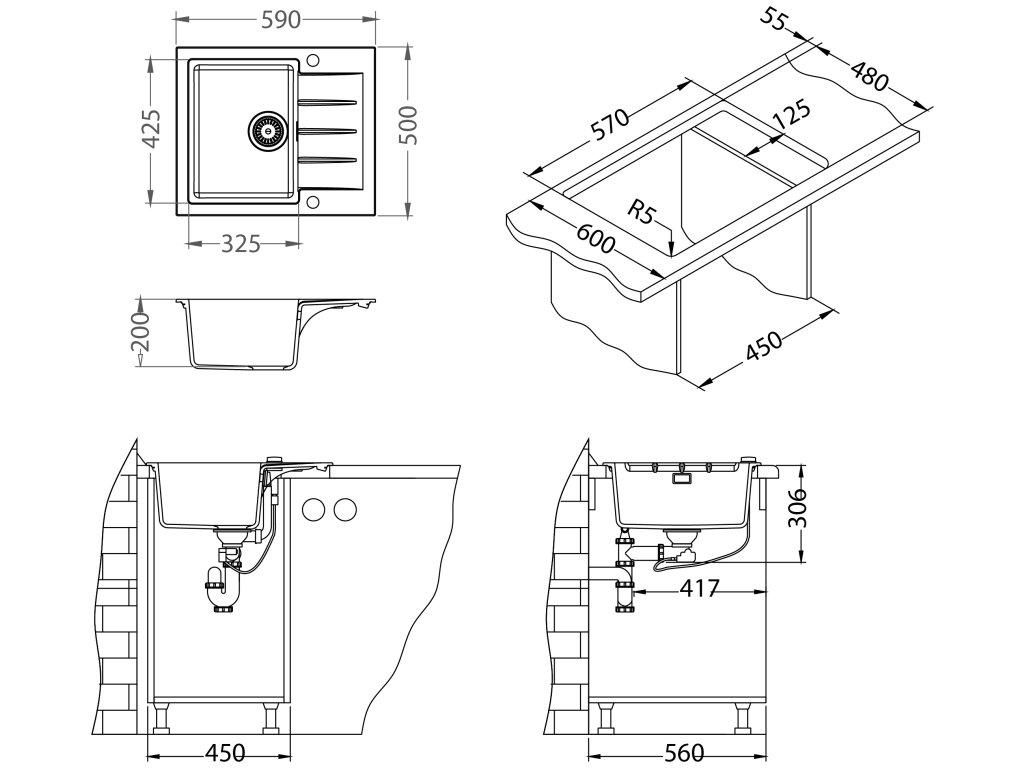 Vestavěný dřez, univerzál.