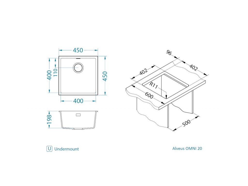 Instalace vrchní I montáž nebo spodní U, velikost skříňky 500 mm