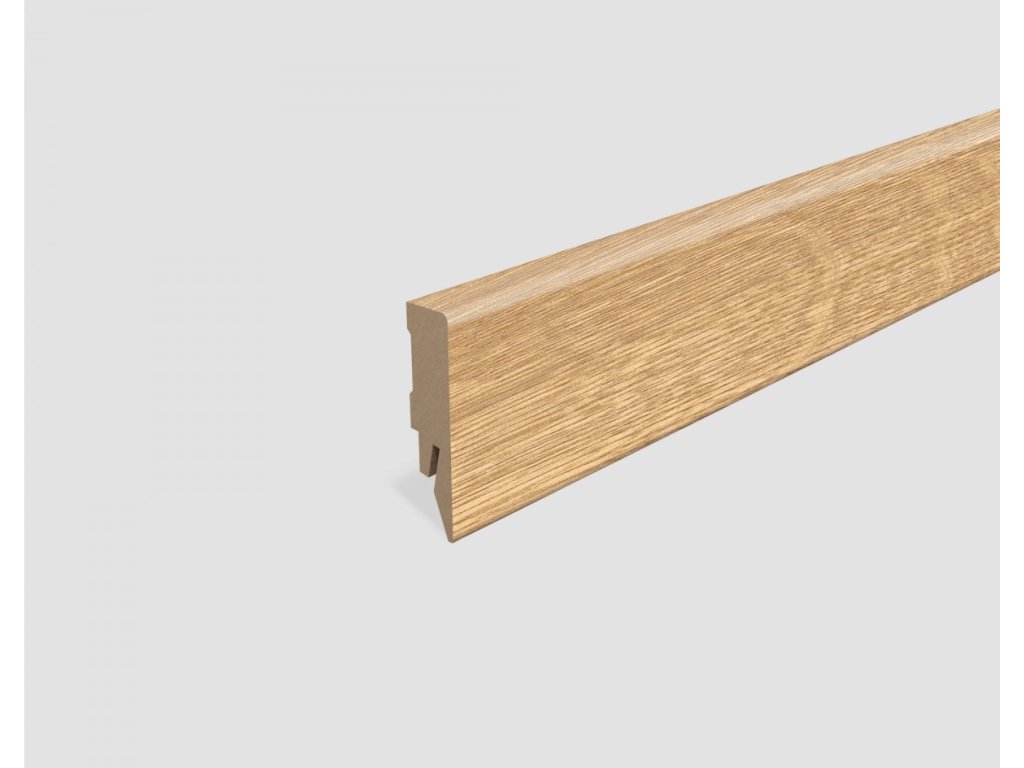 Soklové lišty EGGER 60 mm zladené s dekorom podlahy dodajú ploche čisté ukončenie a estetický vzhľad. Slúžia na prekrytie dilatačných škár pri stene. Robustné lišty sú zhotovené z MDF jadra a vodoodpudivej fólie s dekorom. Lišty je možné namontovať lepením použitím montážneho lepidla, alebo pomocou kovových úchytov EGGER Clipstar. Spôsob montáže pomocou úchytov umožňuje lišty v prípade potreby rýchlo a jednoducho odstrániť a opätovne nasadiť. V odporúčaných doplnkoch ponúkame na prekrytie spojov/ rezov soklových líšt plastové prvky EGGER, ktoré sú vhodne zladené s dekorom lišty.