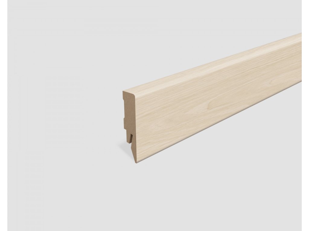 Soklové lišty EGGER 60 mm zladené s dekorom podlahy dodajú ploche čisté ukončenie a estetický vzhľad. Slúžia na prekrytie dilatačných škár pri stene. Robustné lišty sú zhotovené z MDF jadra a vodoodpudivej fólie s dekorom. Lišty je možné namontovať lepením použitím montážneho lepidla, alebo pomocou kovových úchytov EGGER Clipstar. Spôsob montáže pomocou úchytov umožňuje lišty v prípade potreby rýchlo a jednoducho odstrániť a opätovne nasadiť. V odporúčaných doplnkoch ponúkame na prekrytie spojov/ rezov soklových líšt plastové prvky EGGER, ktoré sú vhodne zladené s dekorom lišty.