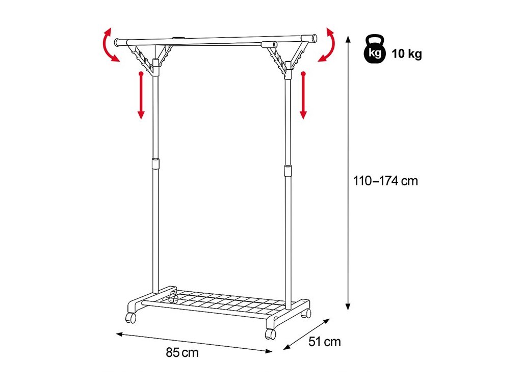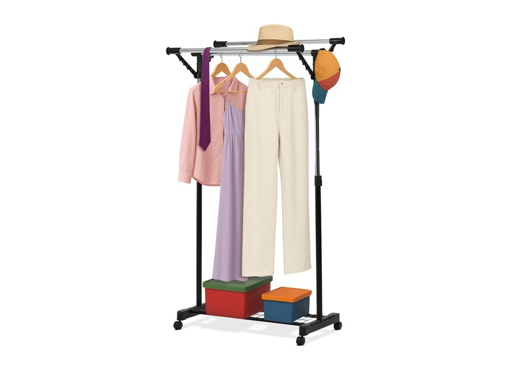 Praktický stojan na šaty značky Autronic prináša funkčnosť aj moderný dizajn. Čierna kovová konštrukcia s chrómovými prvkami ponúka vysokú stabilitu a nastaviteľnosť, čo umožňuje prispôsobiť výšku podľa potreby. Dvojitá tyč poskytuje dostatok priestoru na zavesenie oblečenia, zatiaľ čo kolieska zaisťujú ľahkú manipuláciu. Robustná konštrukcia zvládne aj vyššie zaťaženie, takže je ideálna do spální, šatní alebo predsiení. Vďaka čistému a jednoduchému vzhľadu sa tento stojan ľahko začlení do akéhokoľvek interiéru a uľahčí organizáciu vášho priestoru.