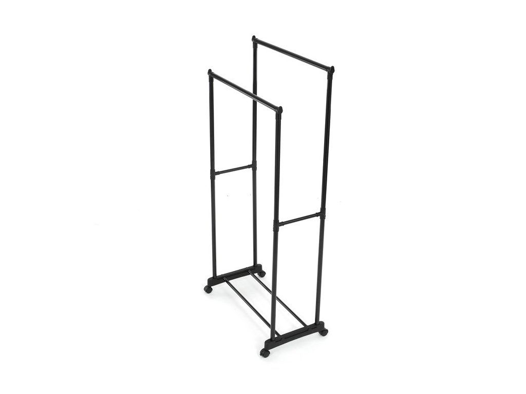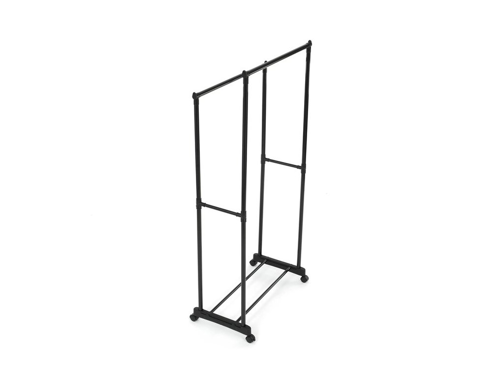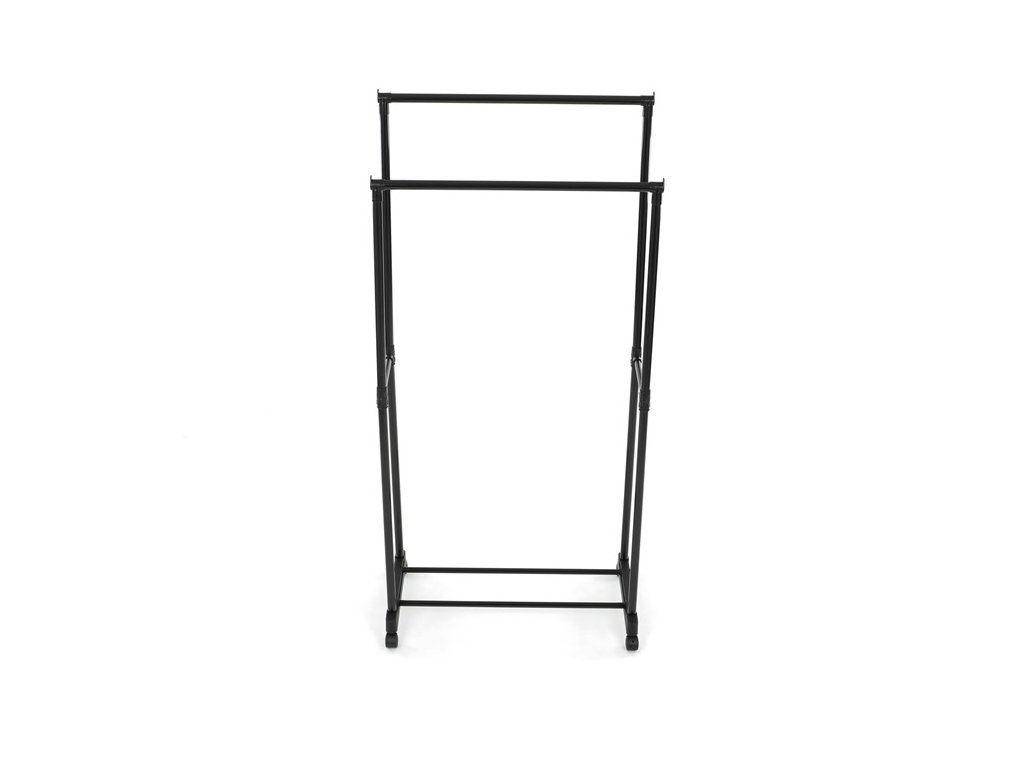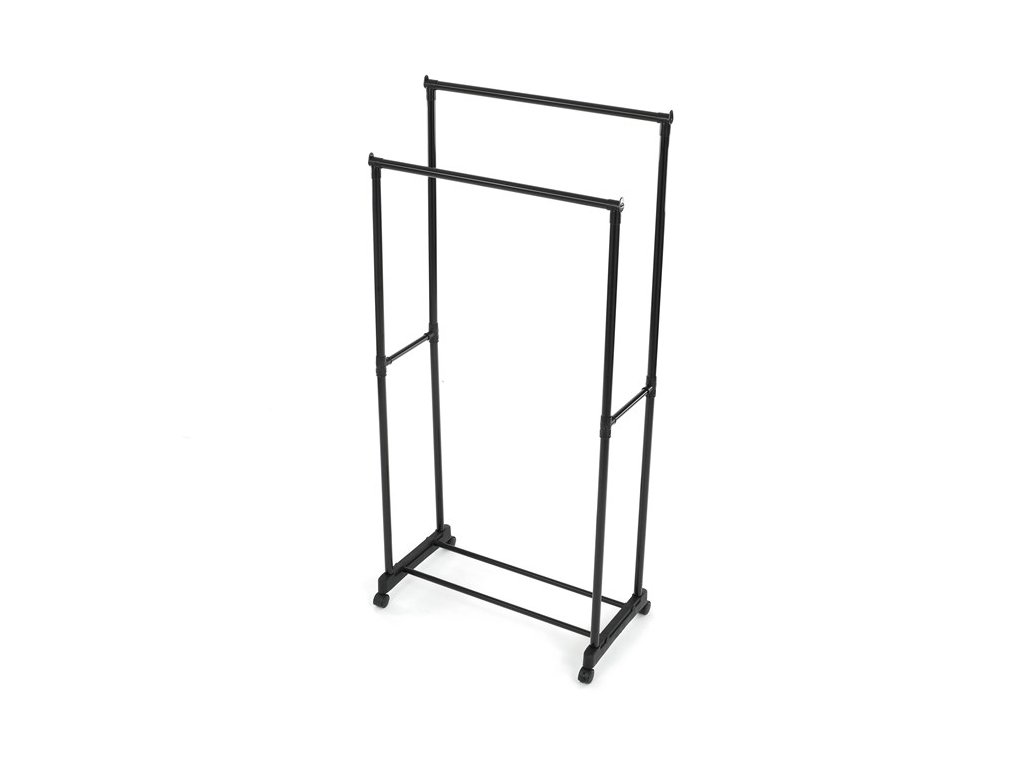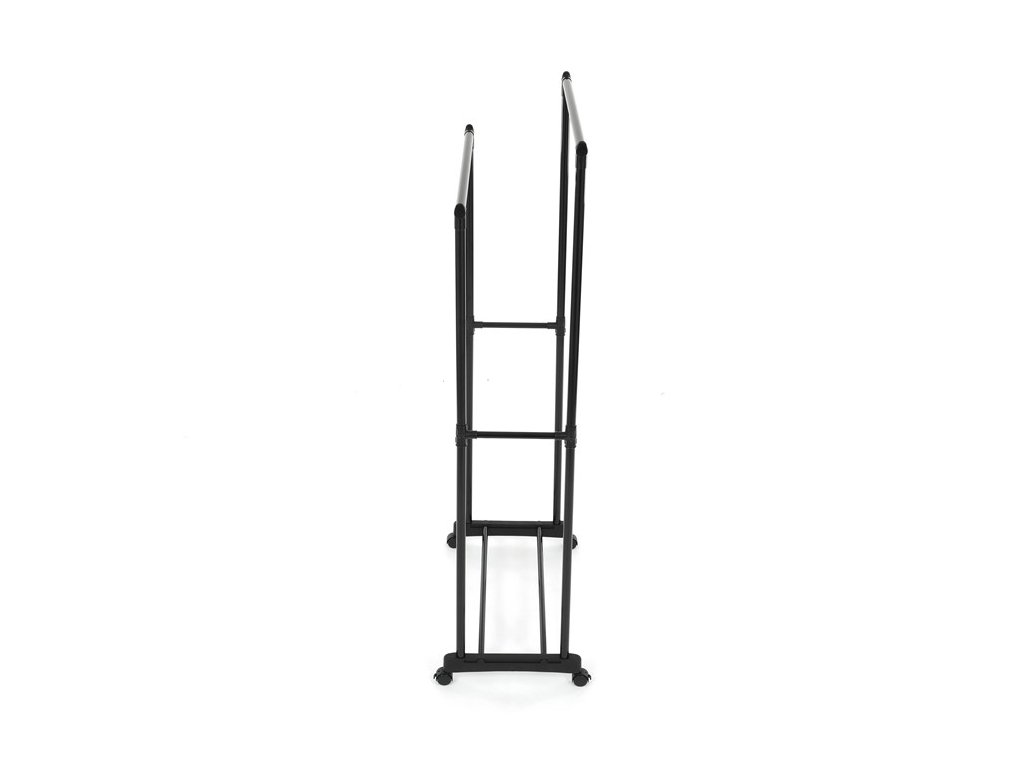 Praktický stojan na šaty značky Autronic je ideálnym riešením na prehľadné usporiadanie oblečenia a doplnkov. Čierna kovová konštrukcia ponúka odolnosť a moderný vzhľad, ktorý ľahko zapadne do akéhokoľvek interiéru. Stojan disponuje dvoma tyčami na zavesenie odevov a dolnou policou pre topánky či tašky. Vďaka kolieskam je ľahko premiestniteľný a ponúka flexibilitu pri jeho využití. Nastaviteľná výška umožňuje prispôsobenie vašim potrebám, čo z neho robí ideálny doplnok do šatne, spálne alebo predsiene.