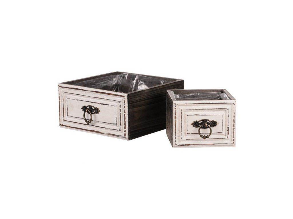 BONTEC Šuplík drevený - obal na kvety, biely, cena za sada 2 ks