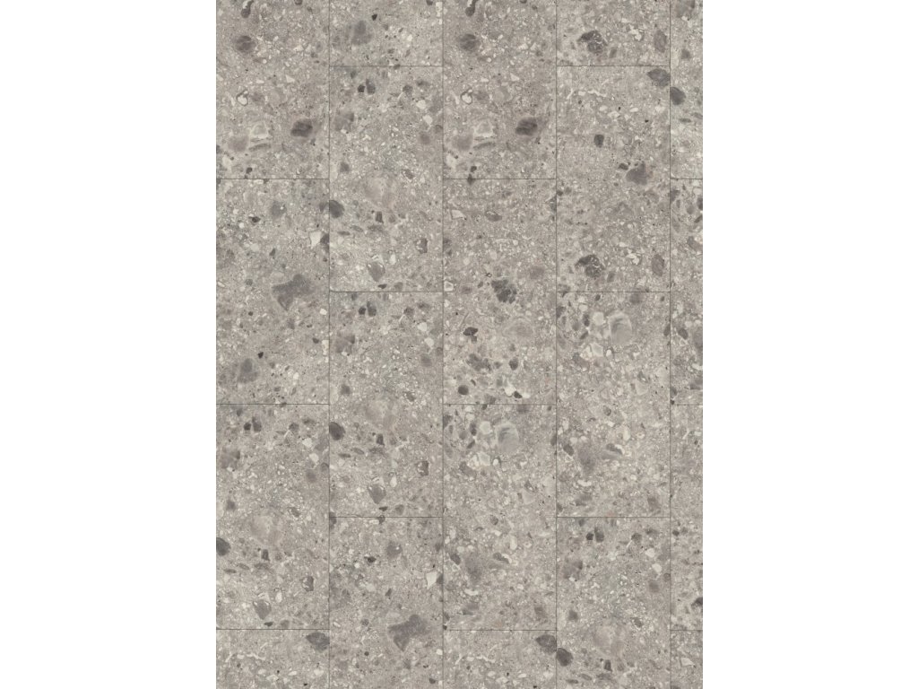 Triestino Terrazzo sivé napodobňuje vzhľad dlažby z prírodného kameňa. Vďaka podlahovým doskám vo formáte Kingsize môže tento dekor naplno rozvinúť svoj krásny vzhľad. Priznané drážky po celom obvode zvýrazňujú vzhľad jednotlivých podlahových dosiek, pričom aj stredom lamely je vedená reálna priznaná drážka, ktorá dodáva podlahe vzhľad dlažby. Tento dekor je súčasťou konceptu Interior match. Je dekorovo zhodný s nábytkovým dekorom F021 ST75 z Kolekcie dekoratívnych materiálov EGGER.