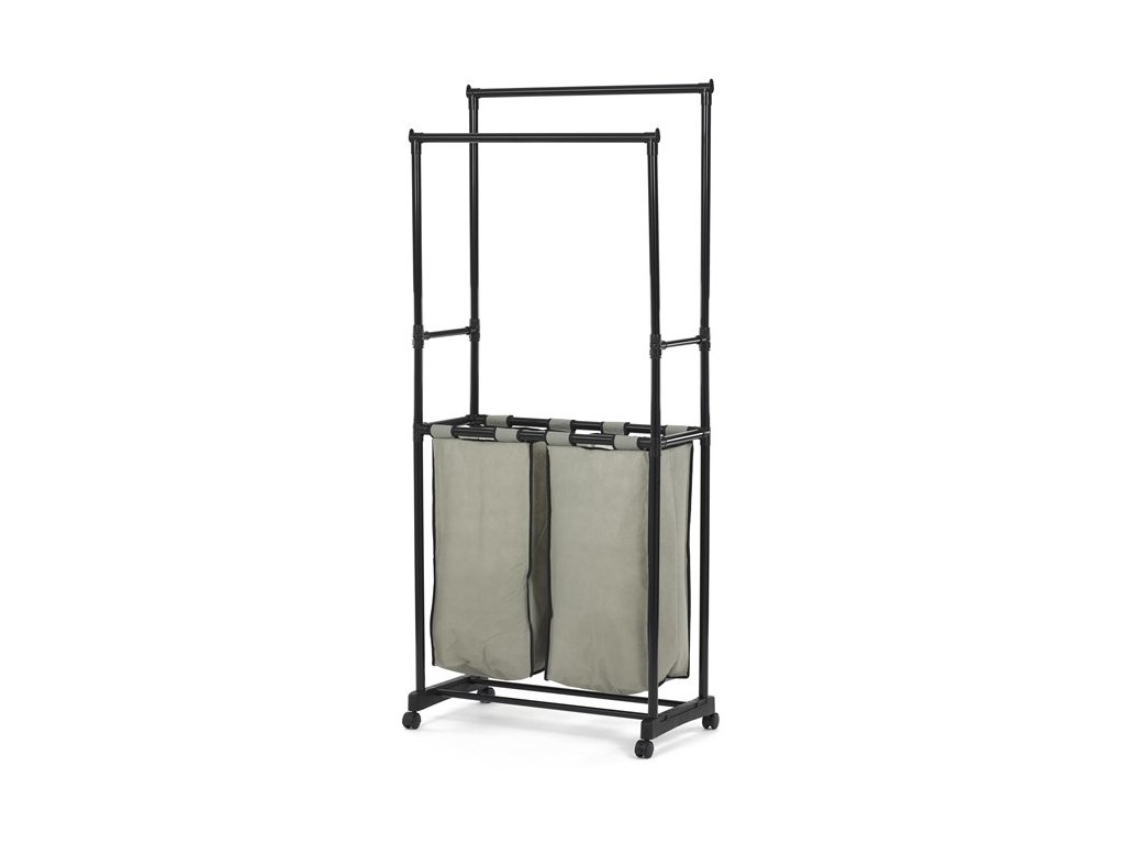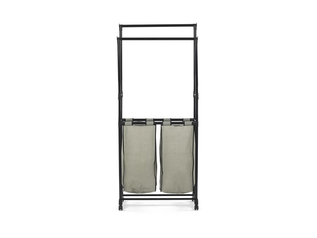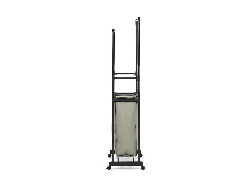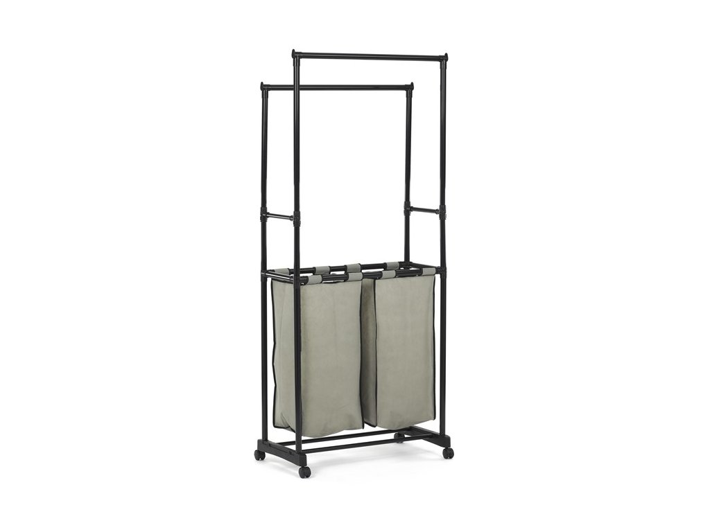 Viacúčelový vešiak značky Autronic ponúka praktické riešenie pre usporiadanie oblečenia aj bielizne. Stabilná čierna konštrukcia s dvoma tyčami na zavesenie oblečenia je doplnená o priestranný kôš na bielizeň, ktorý slúži ako ďalší úložný priestor. Vďaka kolieskam je vešiak ľahko premiestniteľný a ideálny pre predsiene, spálne alebo šatne. Minimalistický dizajn v čiernej farbe zapadne do akéhokoľvek interiéru. Tento vešiak kombinuje funkčnosť, flexibilitu a moderný vzhľad pre vaše každodenné potreby.