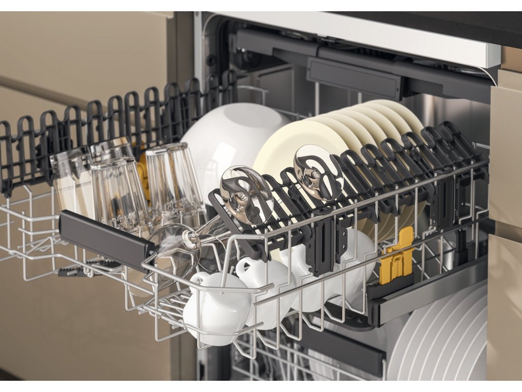 Nastaviteľný horný stojan. Nastaviteľný horný regál umývačky riadu vám umožní v prípade potreby vytvoriť dodatočný priestor a bez námahy umiestniť neobvykle tvarované predmety. |