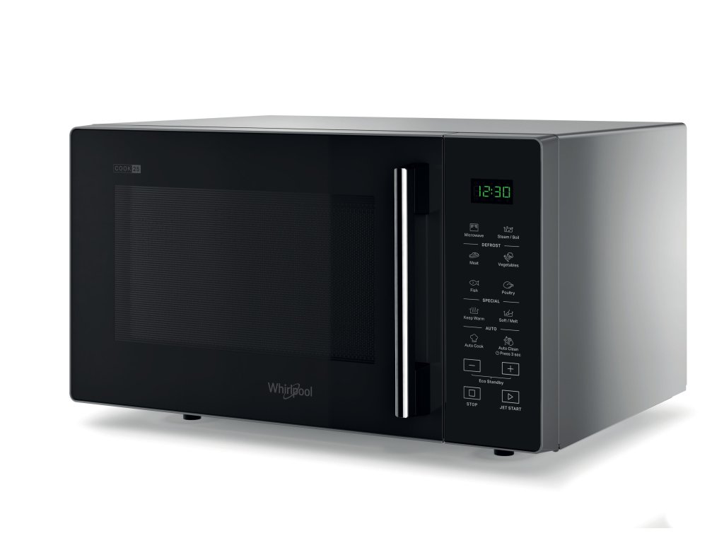 Výhody tejto voľne stojacej mikrovlnnej rúry Whirlpool: čierna farba. Funkcia varenia v pare, aby ste si mohli vychutnať zdravé, ľahké a lahodné jedlá jediným sltačením tlačidla.