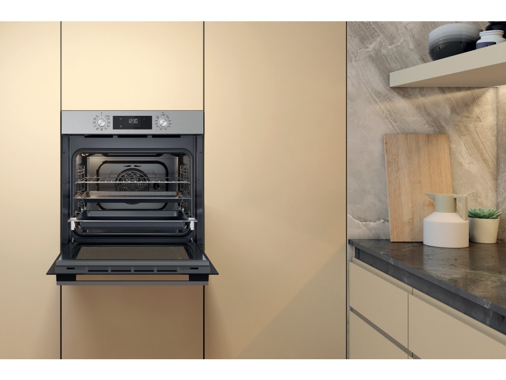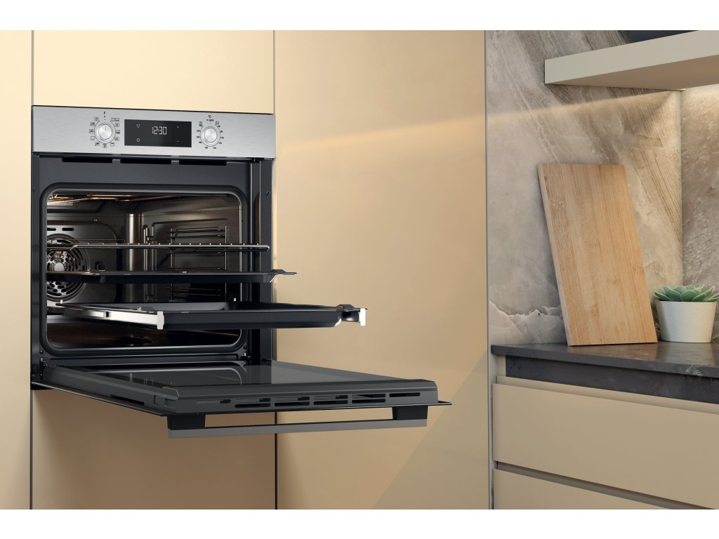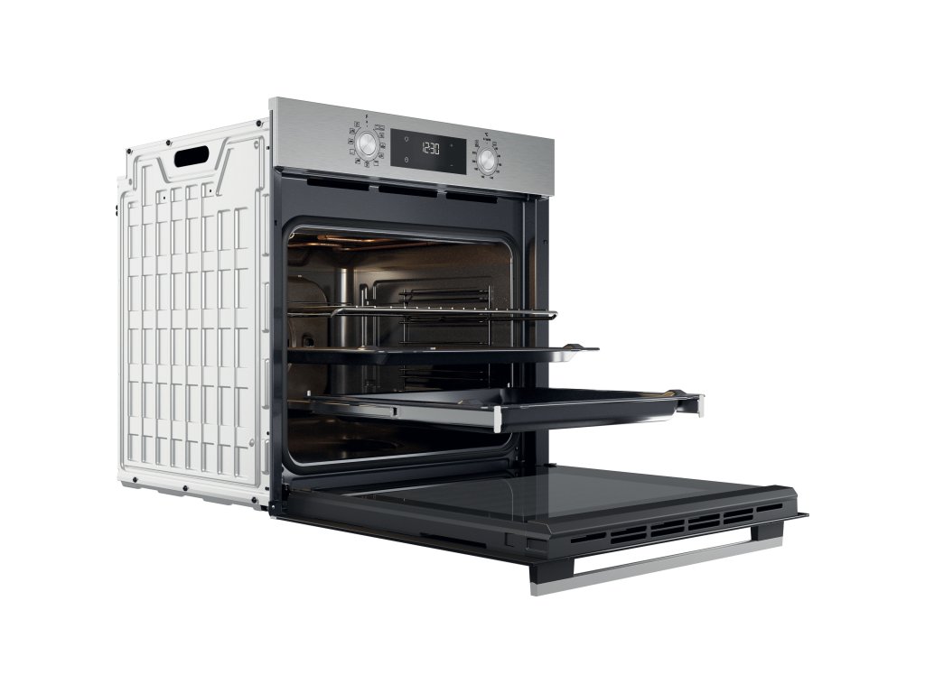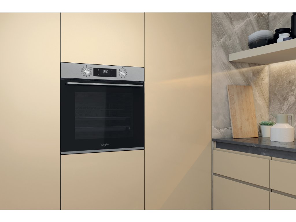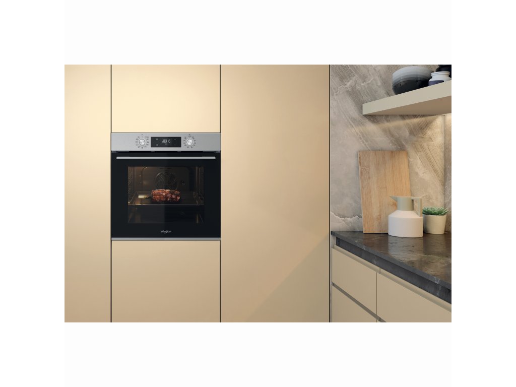 Výhody tejto vstavanej rúry Whirlpool: pokročilá elektrická technológia pre prípravu jedla s úsporou energie. Inovatívna funkcia Cook3, ktorá umožňuje piecť až tri rôzne jedlá naraz bez rizika zmiešania chutí.