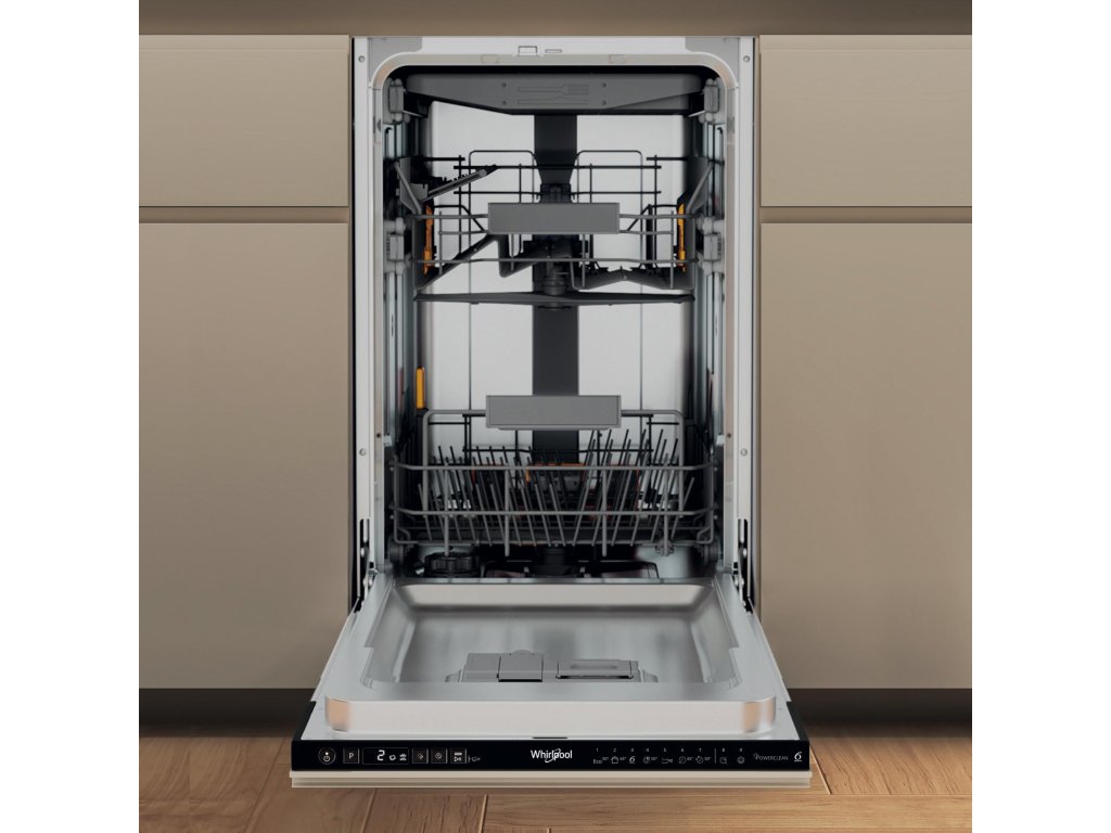 Výhody tejto vstavanej plne integrovanej umývačky riadu Whirlpool: trieda energetickej účinnosti C. Nastaviteľné nožičky pre dokonalú stabilitu na nerovných podlahách a povrchoch. Inovatívna technológia pre mimoriadne tichý výkon a veľmi tichý spotrebič. Vynikajúci výkon umývania pre ideálne výsledky umývania. Vynikajúci výkon sušenia pre vynikajúce výsledky.